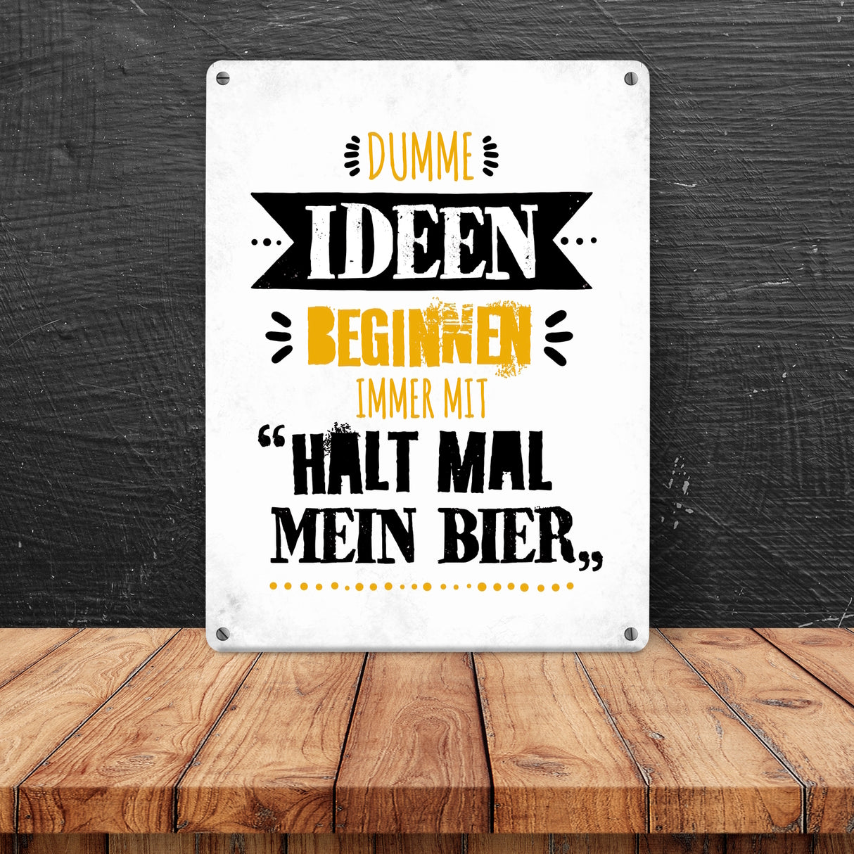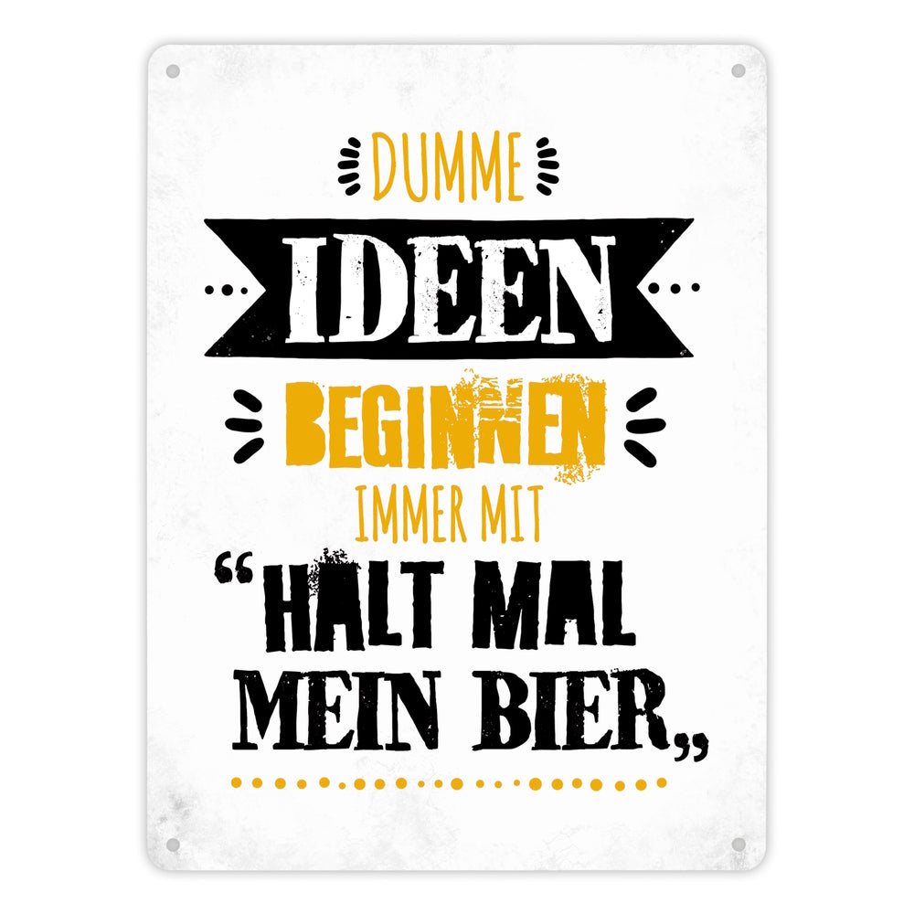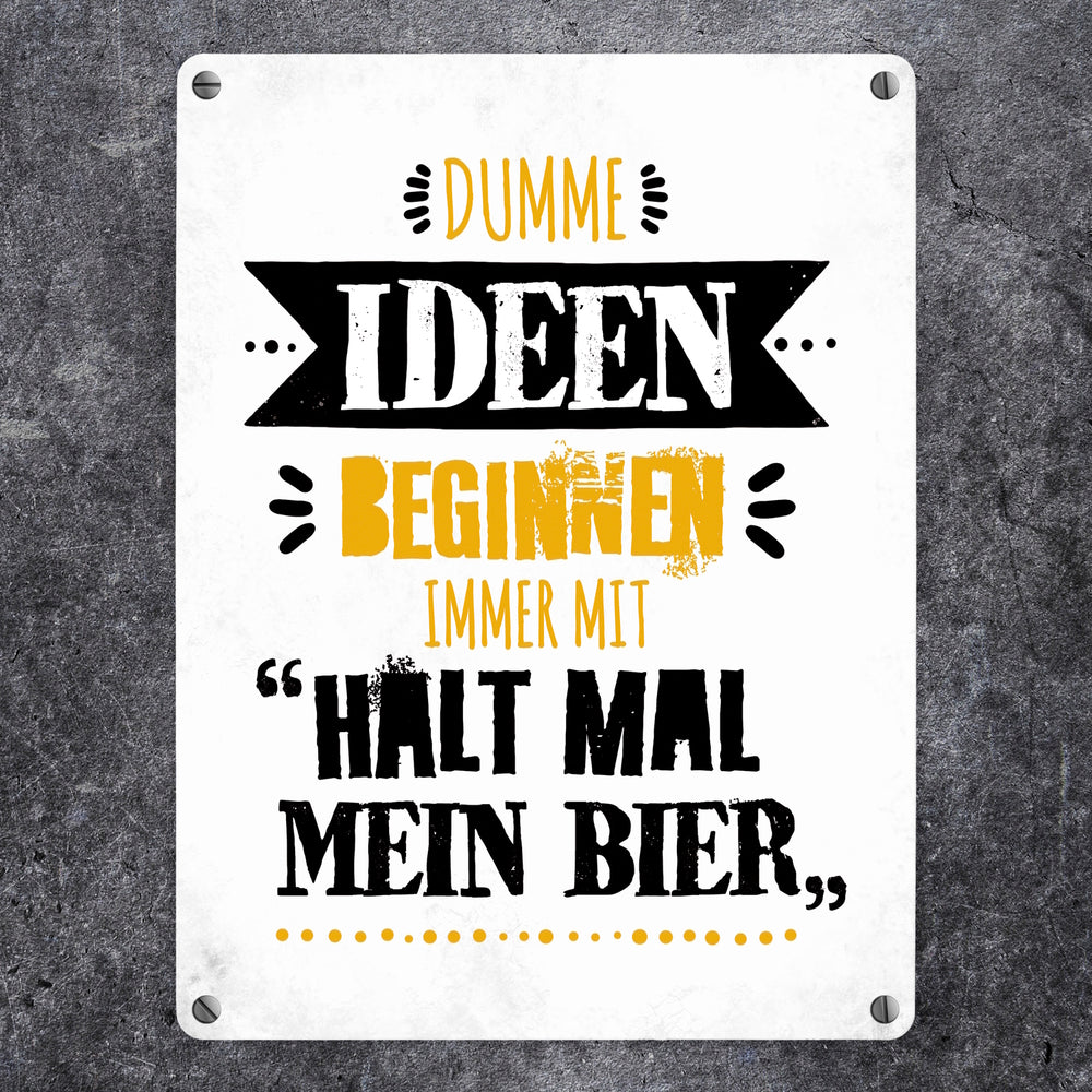 - 1x Dumme Ideen beginnen immer mit Halt mal mein Bier Metallschild in der gewählten Größe