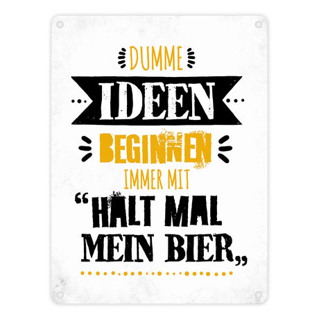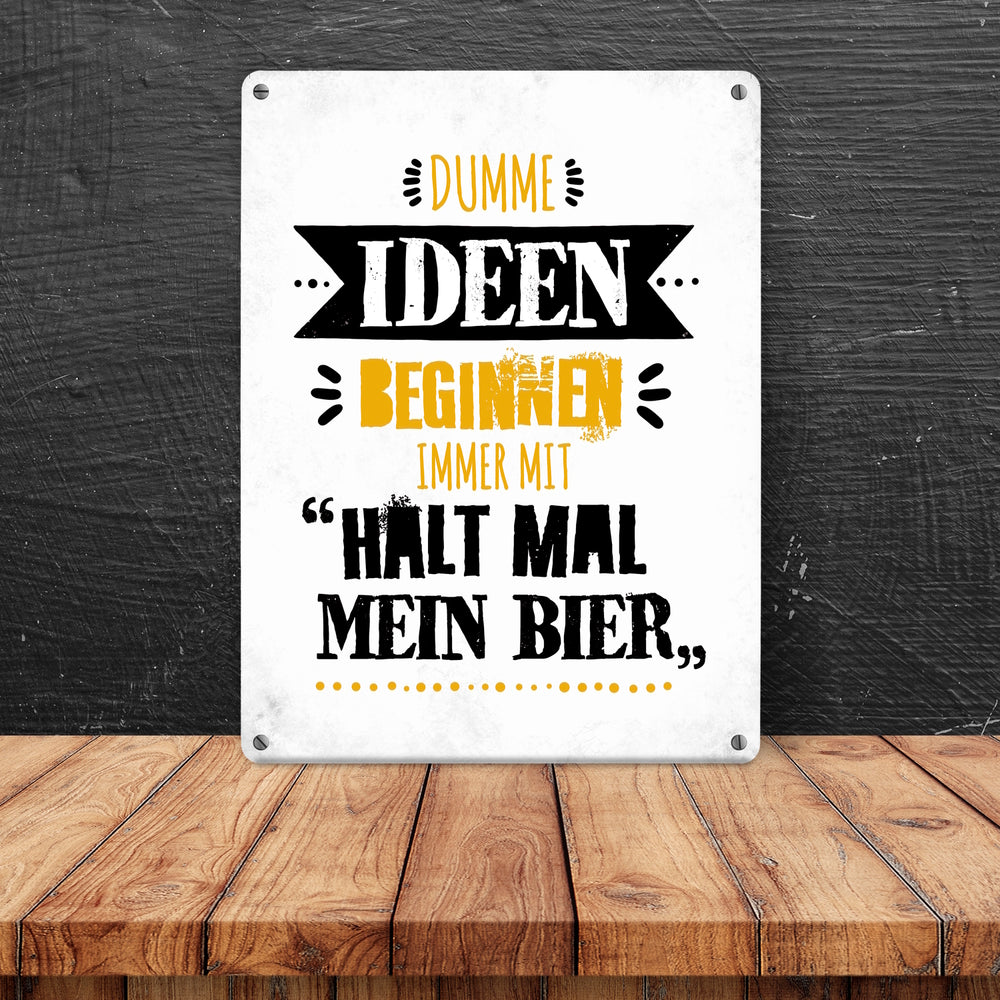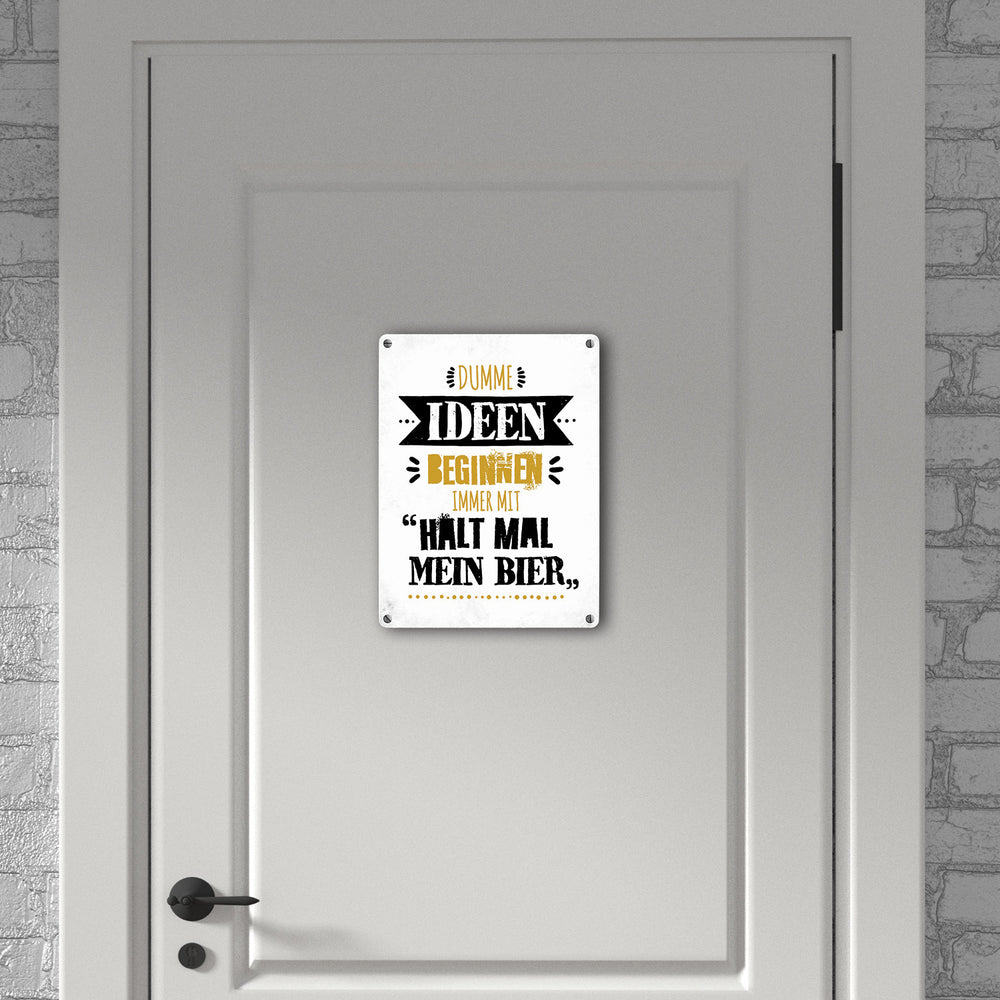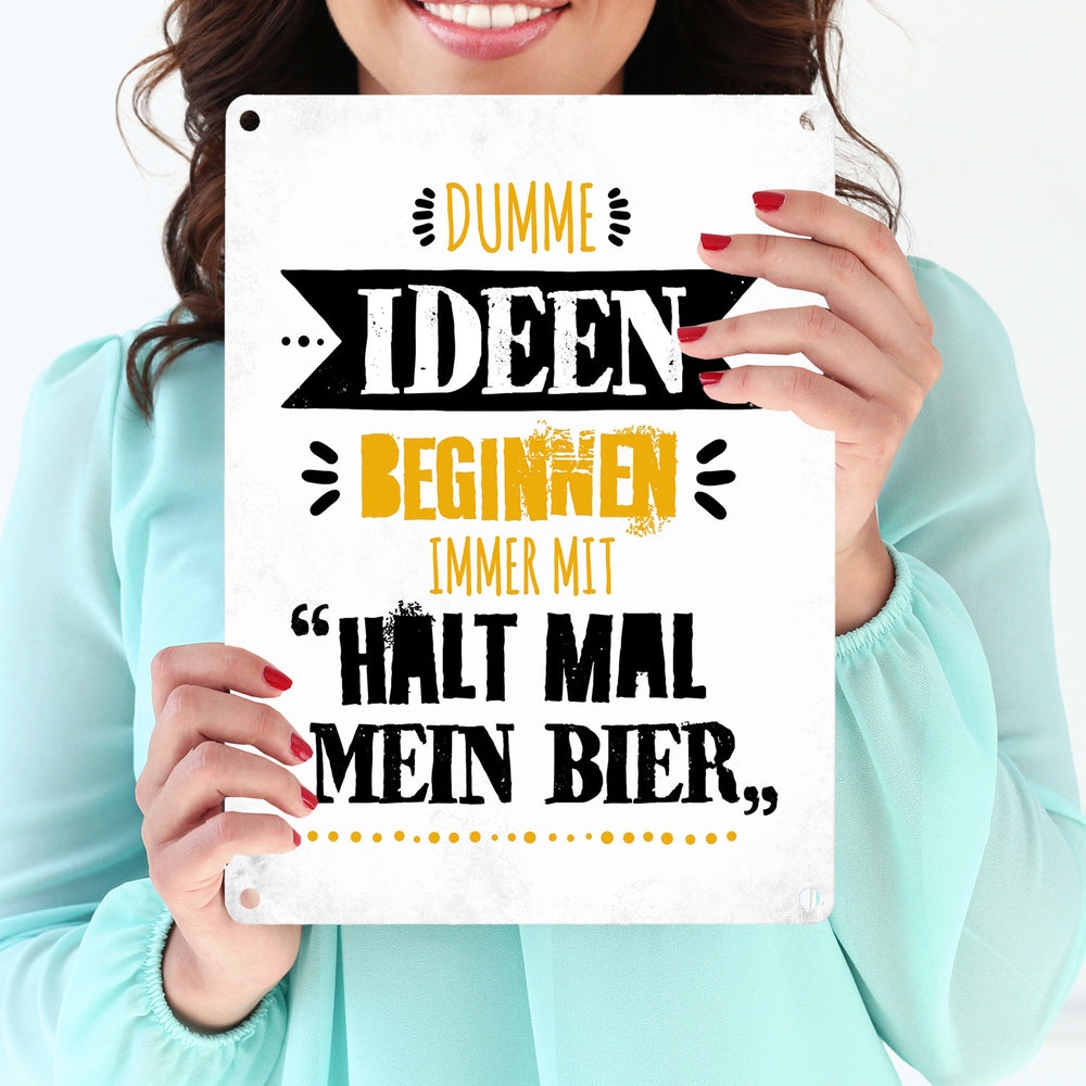Dumme Ideen beginnen immer mit Halt mal mein Bier Metallschild
