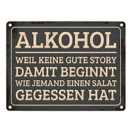 Gute Storys beginnen mit Alkohol nicht mit Salat Metallschild