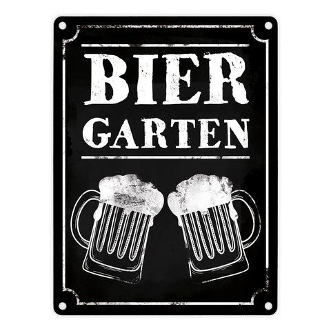 Biergarten Metallschild mit zwei Bierkrügen im Used-Look