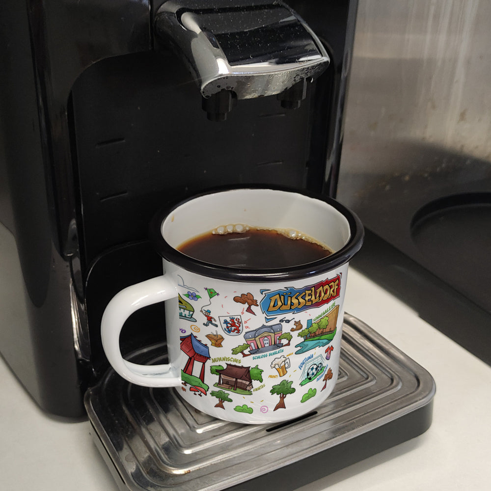 - Ob Kaffeepause oder Teegenuss, dieser bunte Emailletasse bringt Düsseldorfs Charme direkt in den Alltag. Besonders beliebt bei Comic-Fans, Kunstliebhabern und Reisefreunden, die ein Stück Düsseldorf mit nach Hause nehmen wollen. Ideal als Geschenk zum Geburtstag, Jubiläum oder einfach als besondere Überraschung.