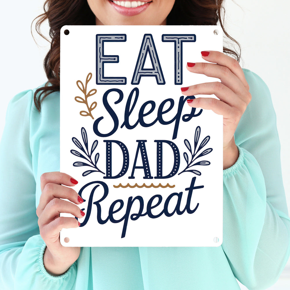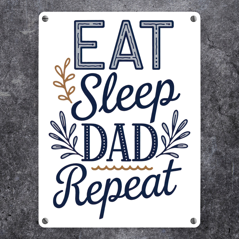 - Hol dir jetzt dein einzigartiges "Eat SLEEP DAD repeat" Metallschild! Mit Liebe gestaltet und in höchster Qualität bedruckt, ist es ein lustiges Geschenk, das garantiert für Lacher sorgt. Eine kleine Erinnerung an den besonderen Mann im Leben, der alles für seine Familie gibt. Jetzt zugreifen!