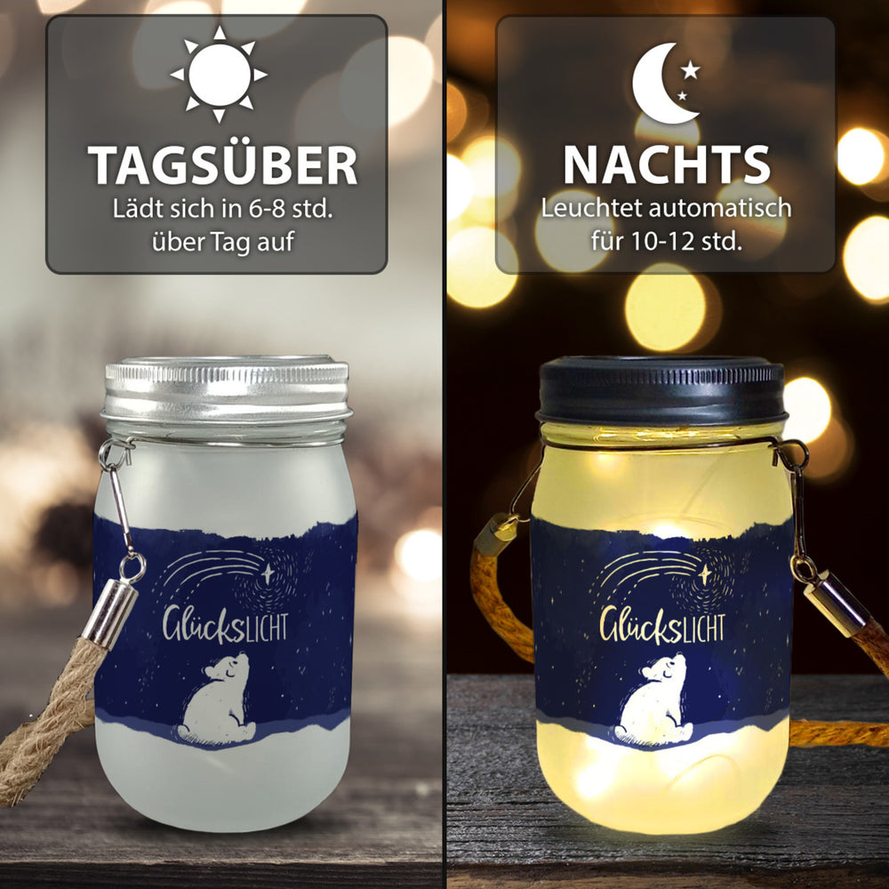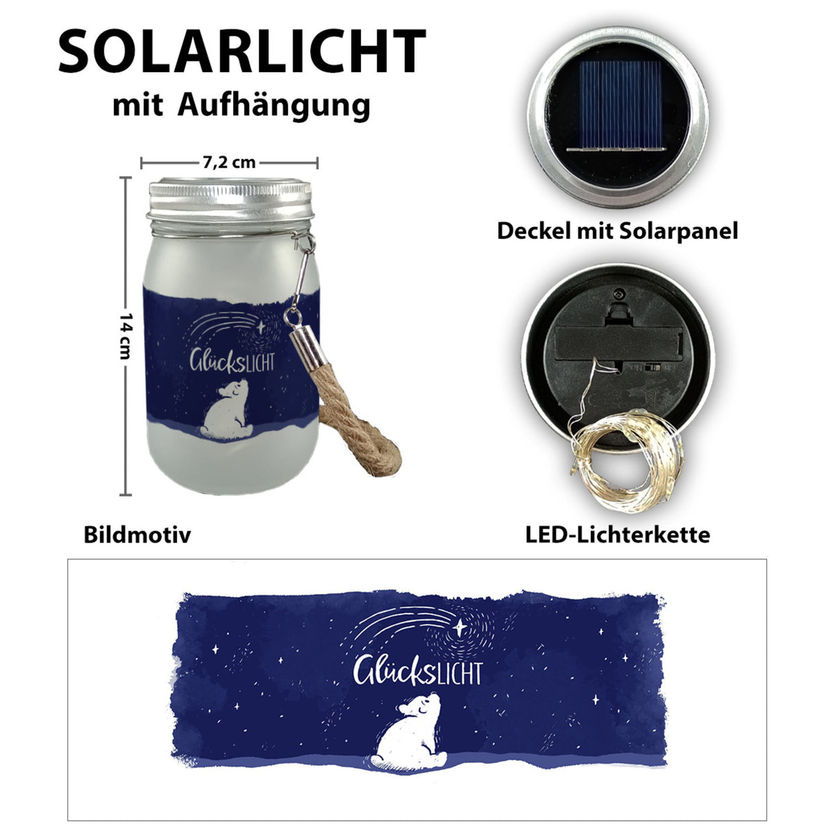 - Lieferumfang: 1x Eisbär Solarlicht mit Spruch Glückslicht