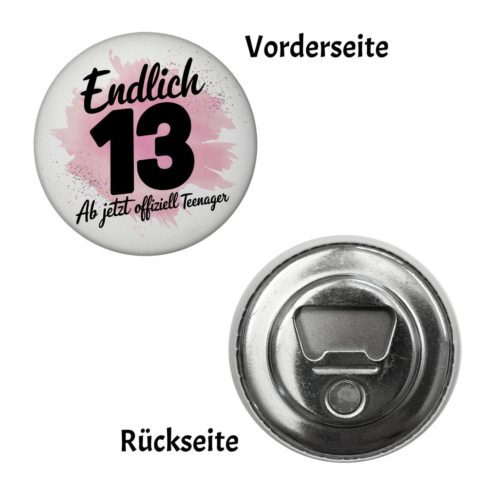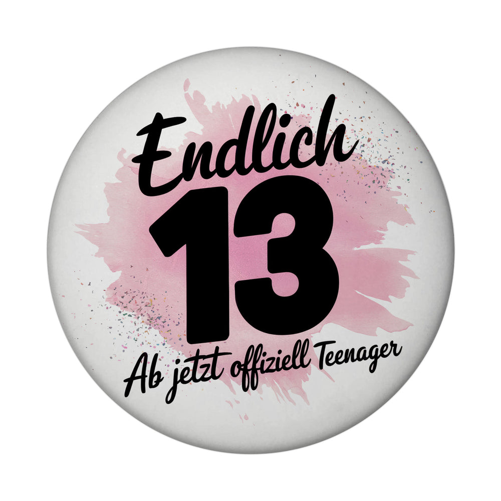 - Hey! Du bist jetzt endlich 13 und darfst dich offiziell Teenager nennen – wohoo! Unser Magnet ist der perfekte Begleiter für dich. Mit seinem lebendigen Design, dem fetten pinken Spritzer und der knalligen Zahl 13 bist du der Star des nächsten Teenie-Treffs. Keine Sorge, deine Eltern werden es auch überleben!
