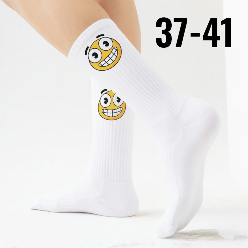 - Die epicsocks EmotiFeet Socken sind ein wahres Highlight für die Füße! Sie präsentieren ein schelmisch grinsendes Emoticon auf strahlend weißen Tennissocken. Gefertigt aus einer weichen Baumwoll-Polyester-Mischung, versprühen sie pure Lebensfreude und laden zum Schmunzeln ein. Ein witziger Spruch rundet das Design ab – Spaß bei jedem Schritt!