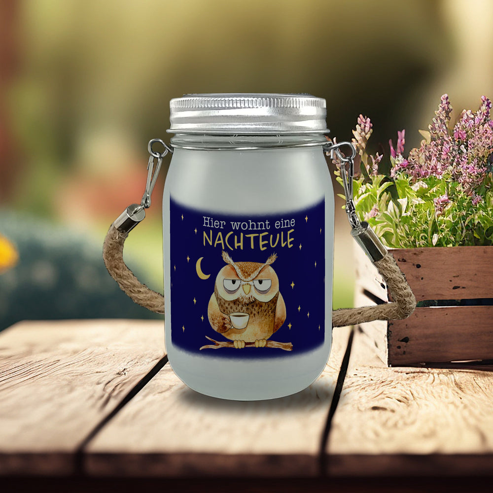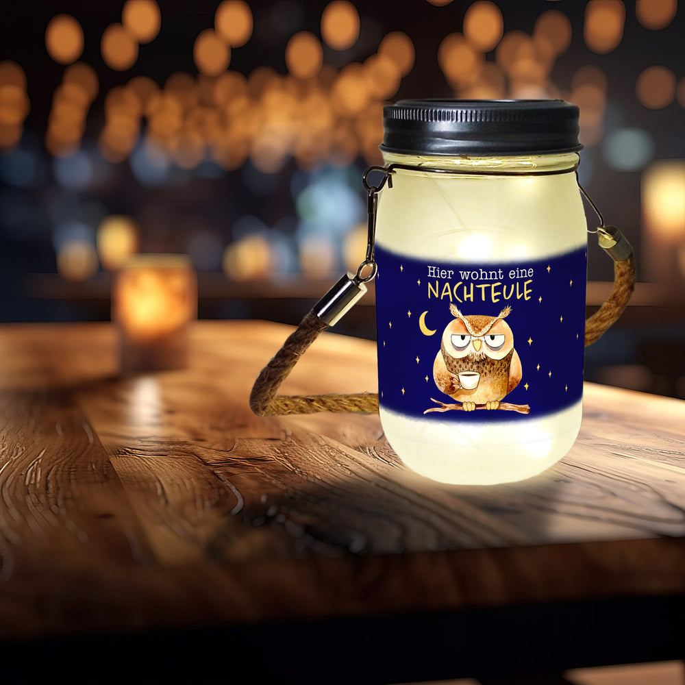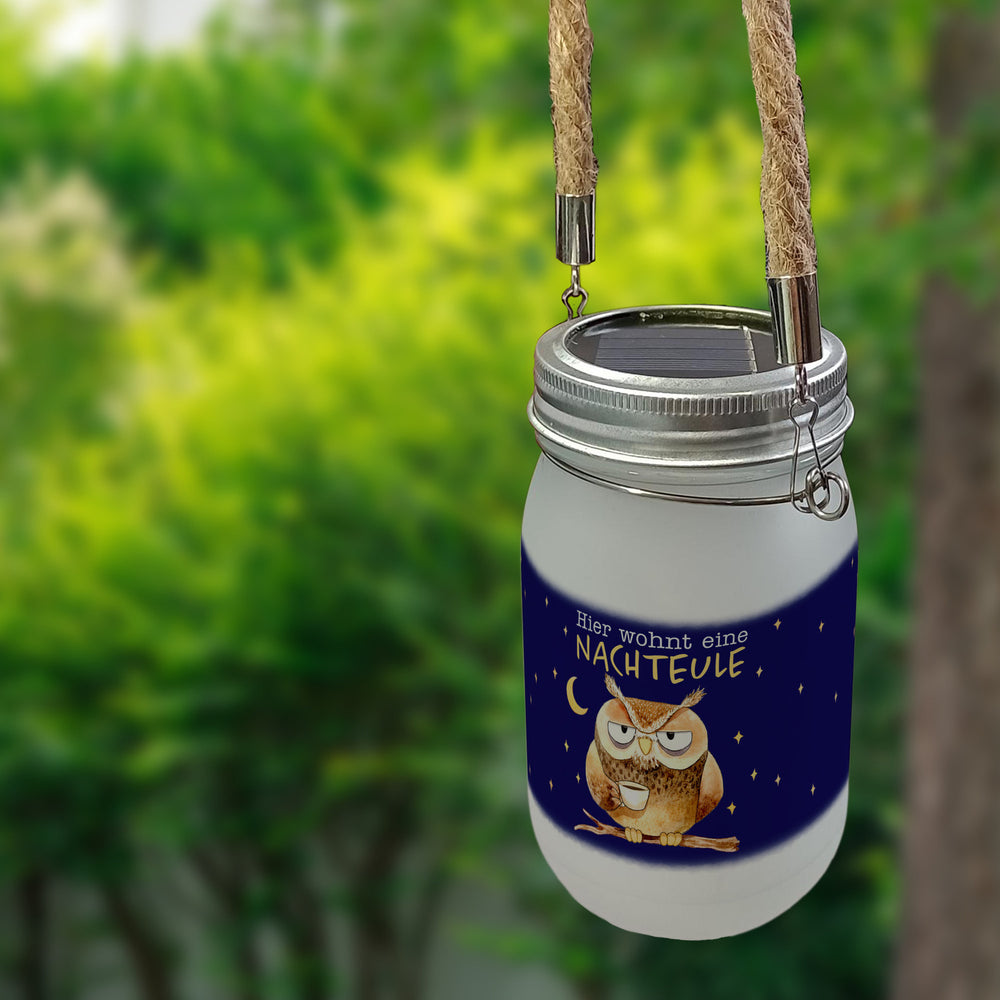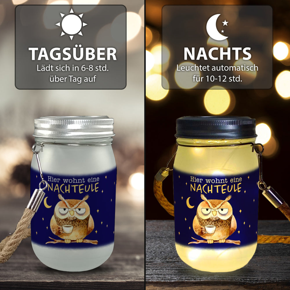 Eule Solarlicht mit Spruch Hier wohnt eine Nachteule