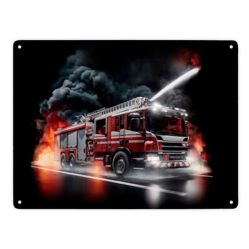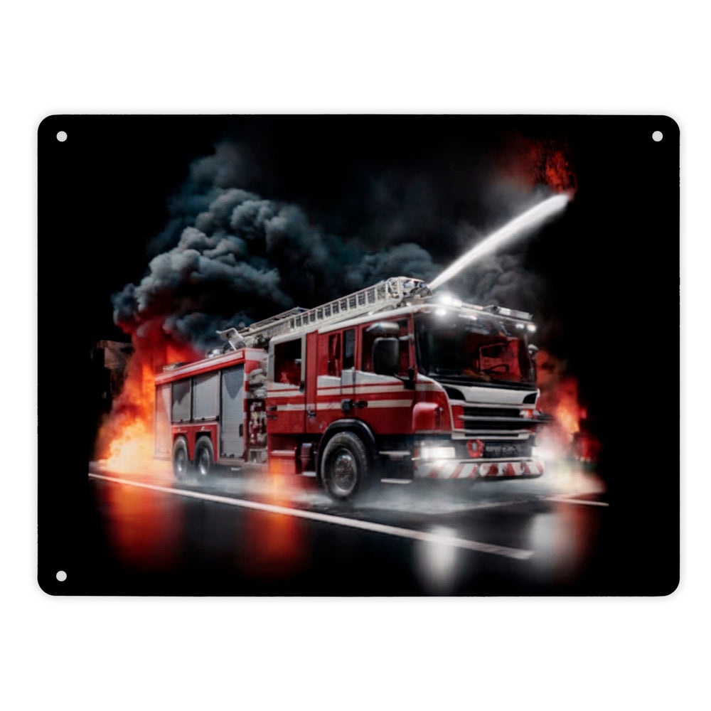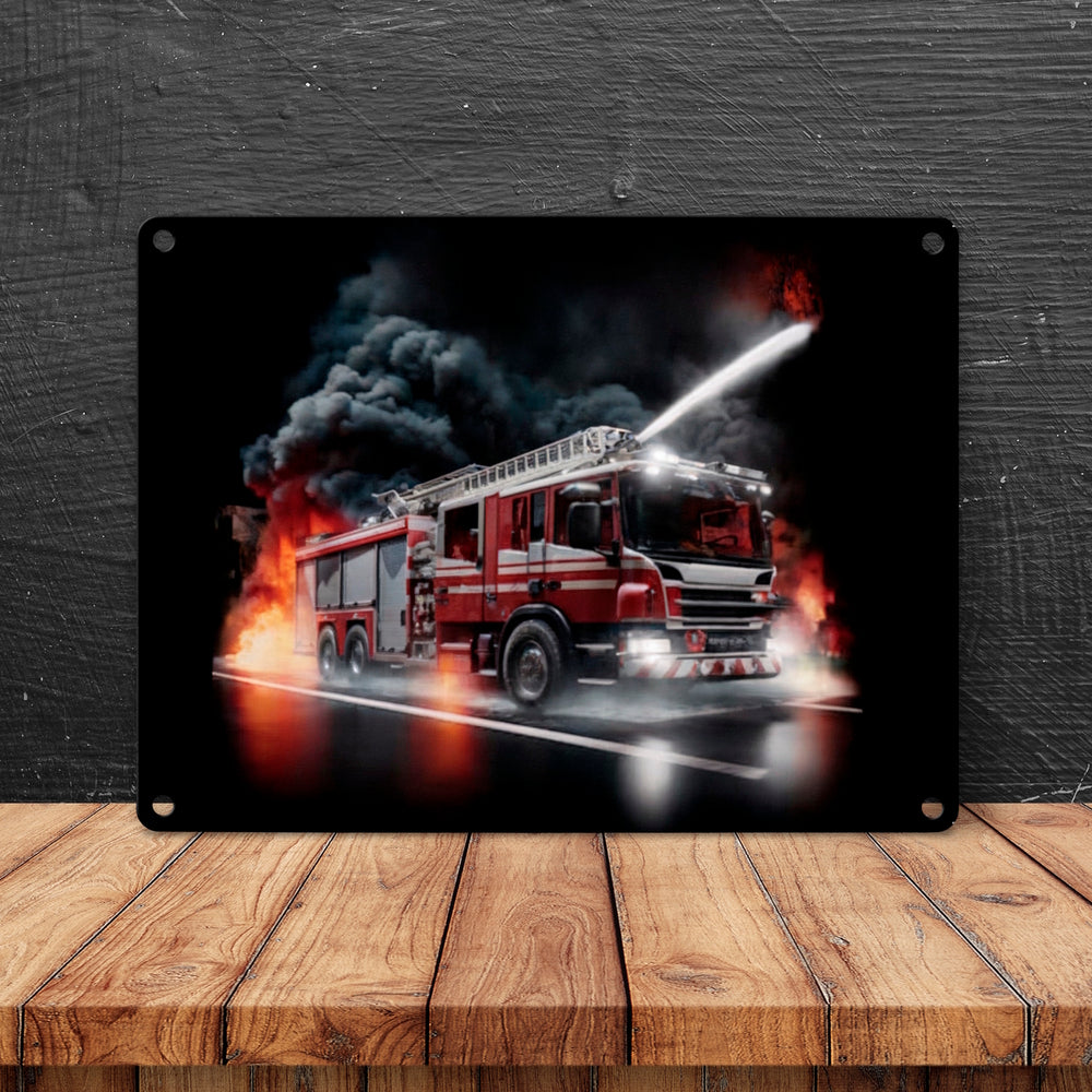 Feuerwehrauto kämpft gegen Flammen Metallschild in 15x20 cm - 15x20 cm ist auf Lager und wird versandt, sobald es wieder verfügbar ist
