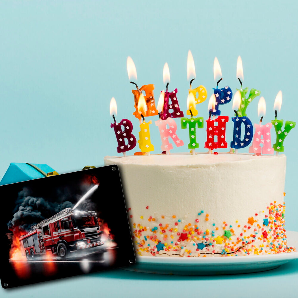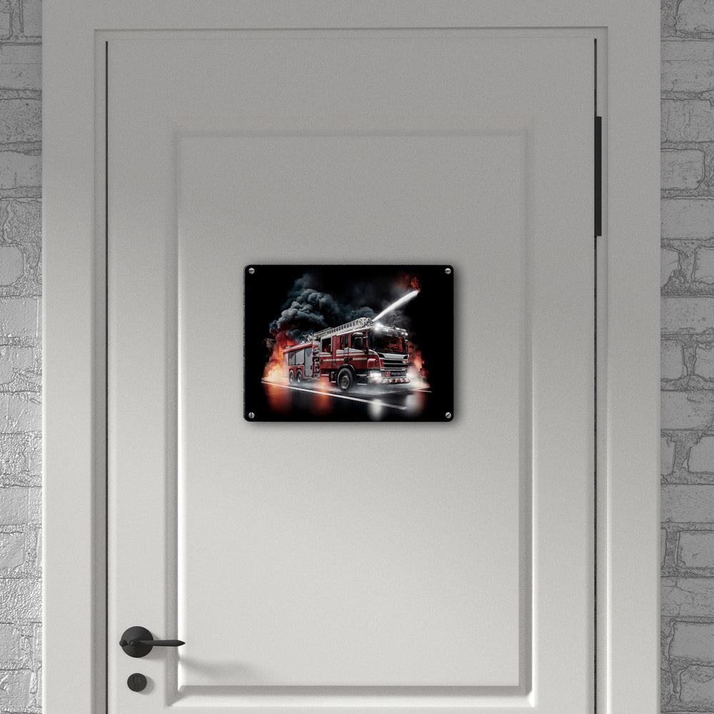 - Hier kommt der Hingucker für alle Feuerwehrfans: Ein feuriges Metallschild! In lebhaften Rot- und Weißtönen zeigt es ein tapferes Feuerwehrauto, das den Flammen mit seinem kraftvollen Wasserstrahl entgegentritt. Der dunkle Rauch im Hintergrund sorgt für dramatische Spannung. Perfekt für alle, die Action und heroische Einsatzkräfte lieben!