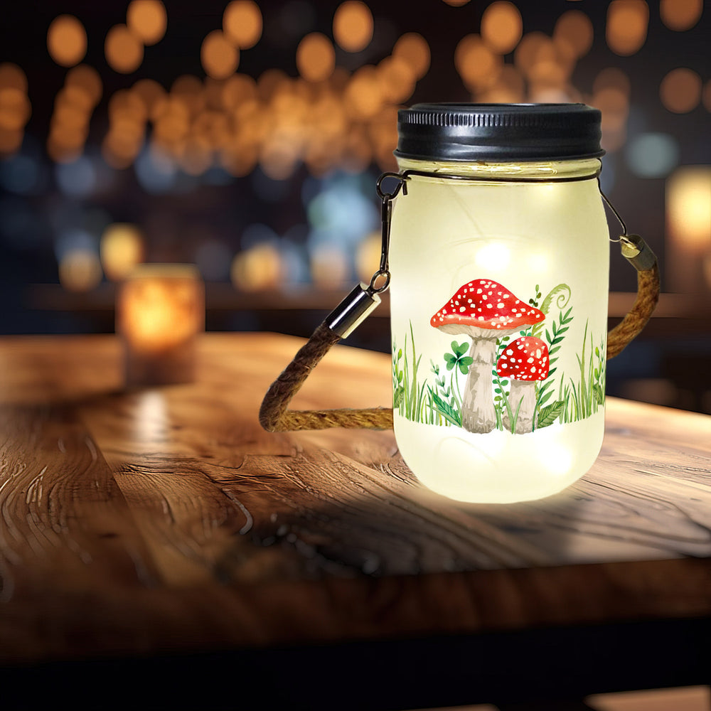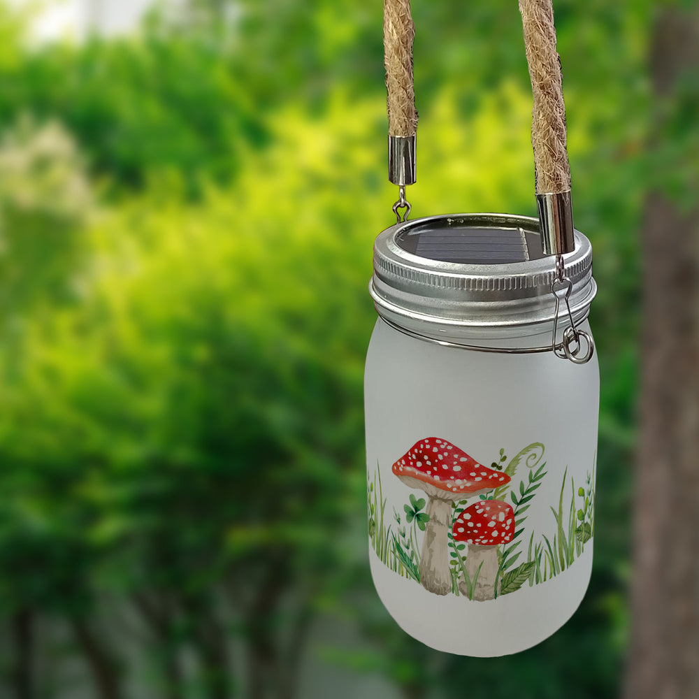 - Unser Solarlicht mit Fliegenpilz Motiv ist eine zauberhafte Mischung aus Natur und Technik. Die bunten Fliegenpilze und Kleeblätter strahlen in einem Einmachglas mit nostalgischem Strickhenkel. Dieses Produkt ist perfekt, um jeden Ort mit einem Hauch von Märchenwald zu beleuchten.