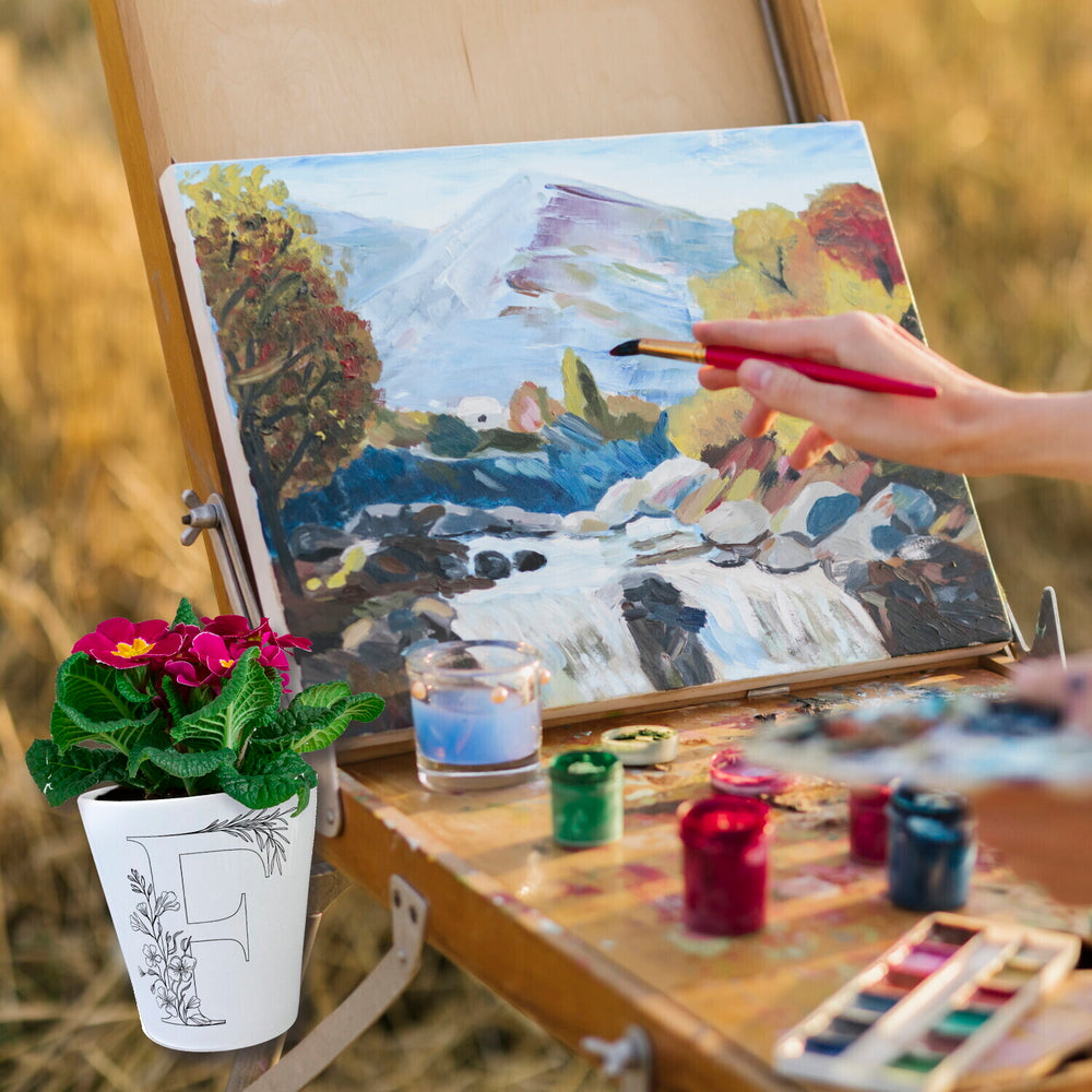 - Lieferumfang: 1x Floral Buchstabe F Blumentopf zum Ausmalen für Kunstliebhaber