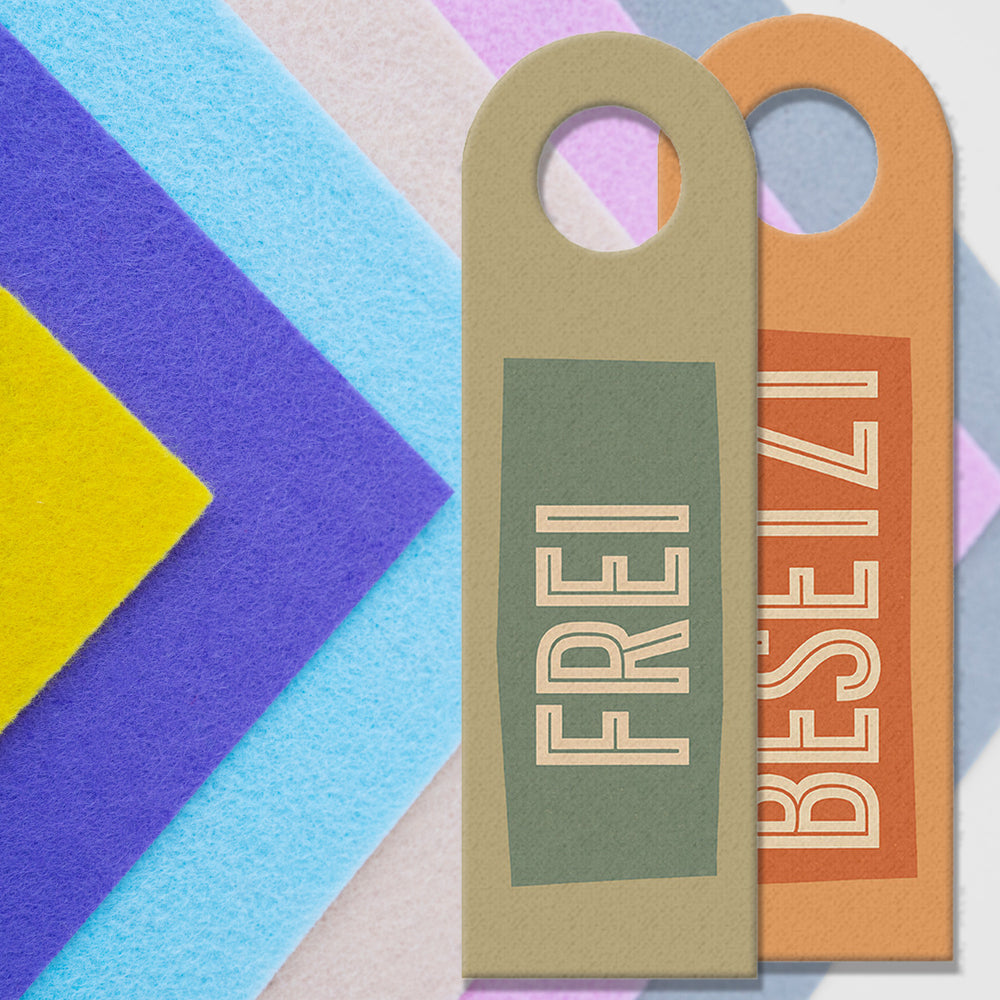 - Einzeln erhältlich oder als 3er- und 10er-Sparset. Aus hochwertigem Filz mit praktischem Loch für die Türklinke. Mit Sorgfalt bedruckt in unserer Türhänger-Manufaktur in Deutschland.