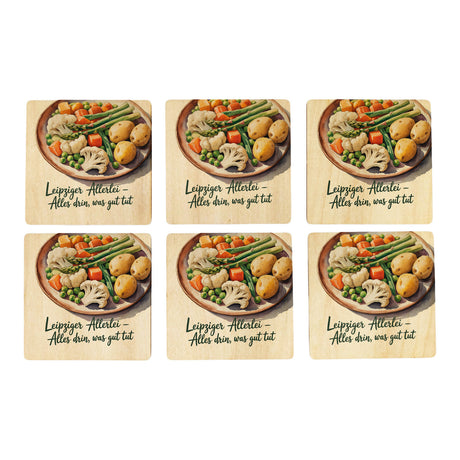 Region Sachsen 6er Set Untersetzer aus Holz - Leipziger Allerlei