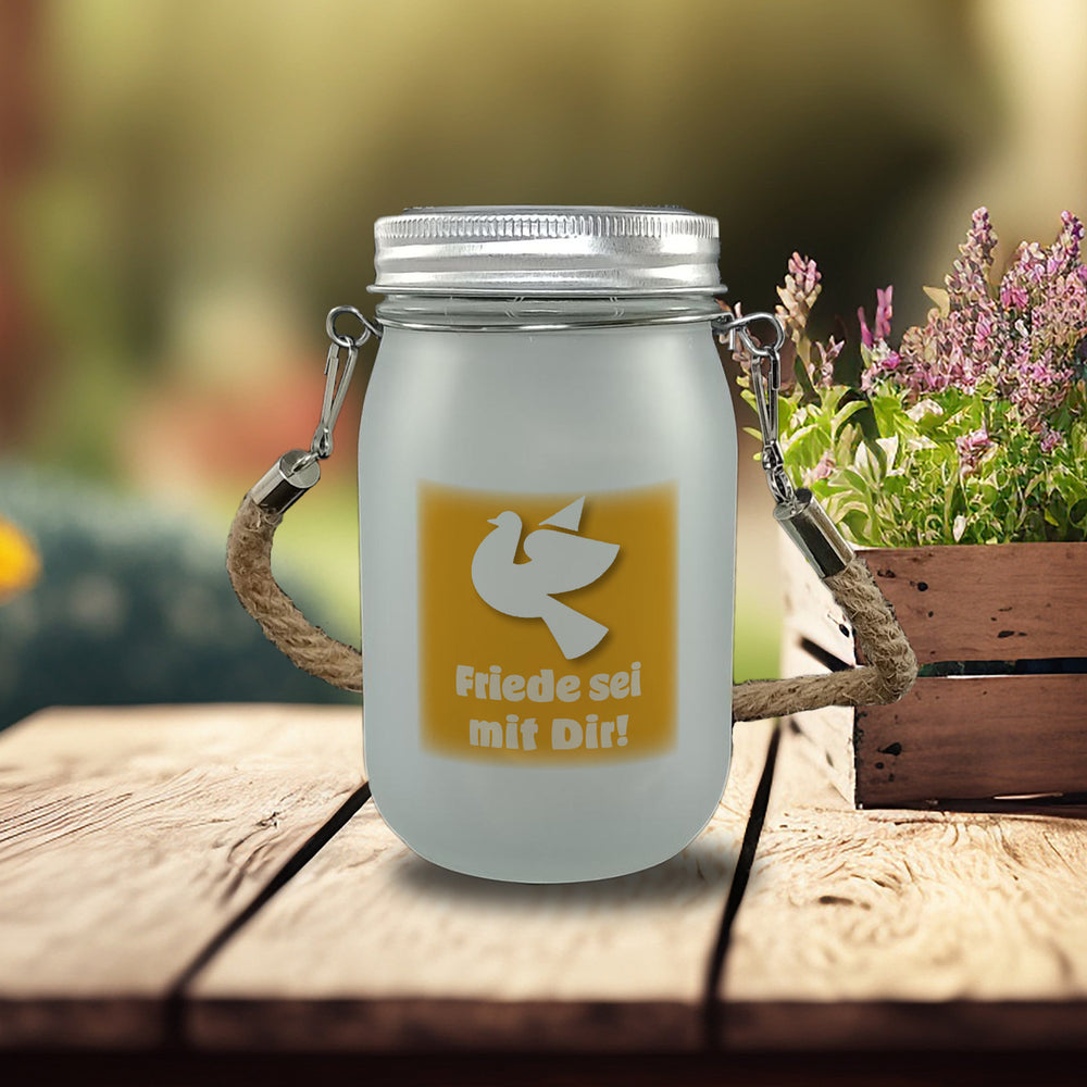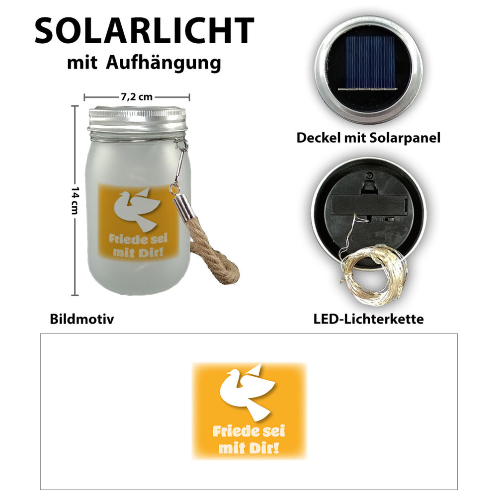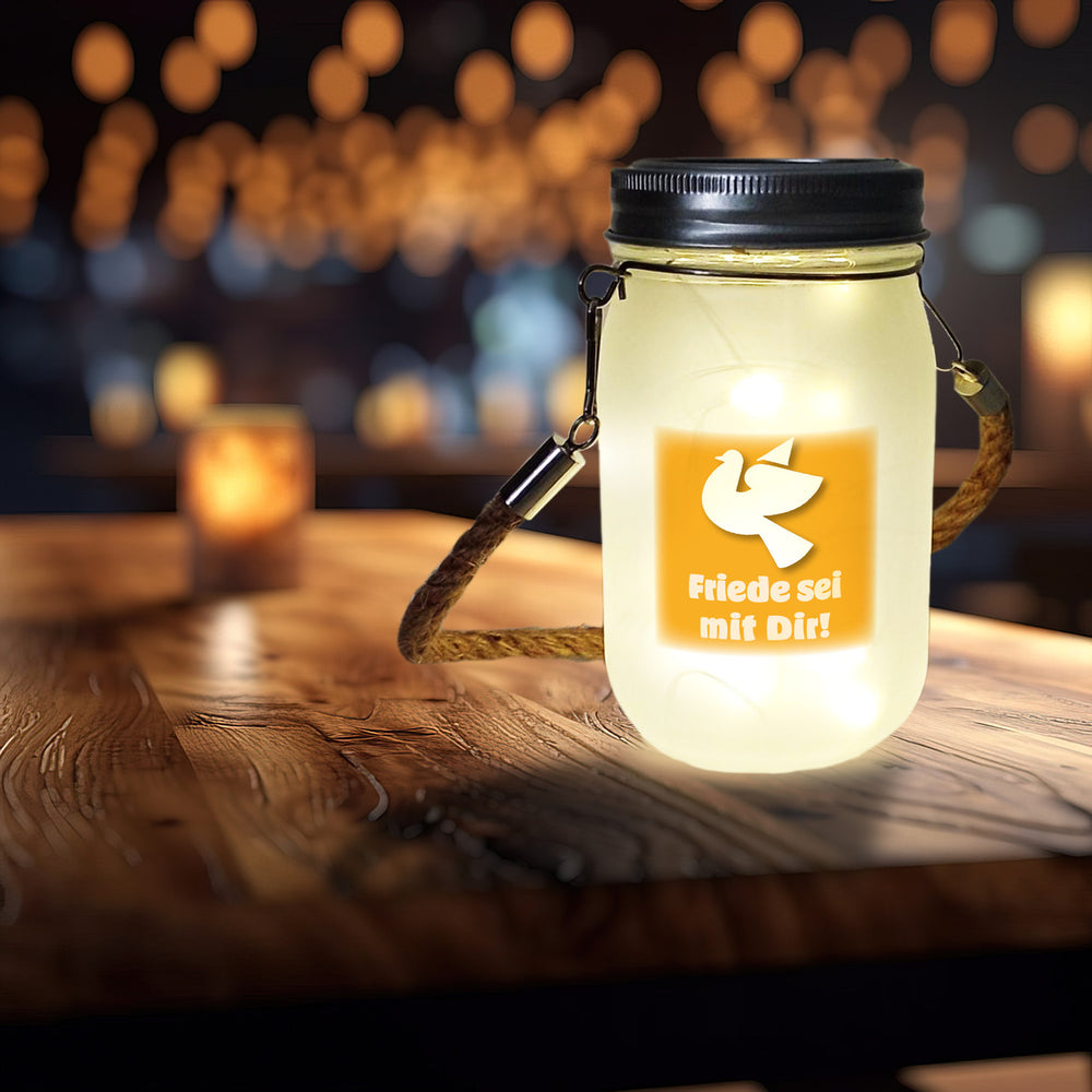 Friedenstaube Solarlicht mit Spruch Friede sei mit Dir