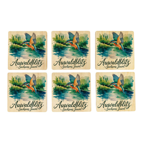 Region Sachsen Eisvogel 6er Set Untersetzer aus Holz - Auwaldblitz