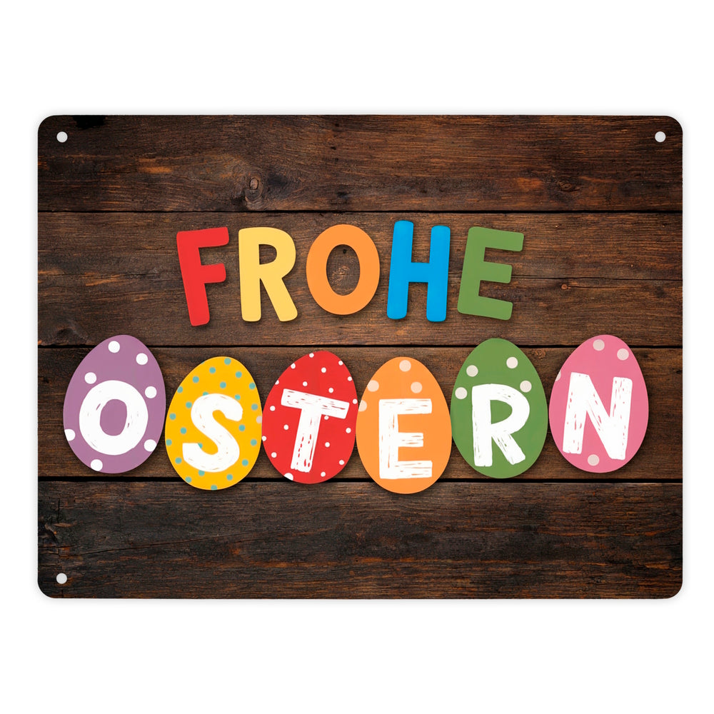 Frohe Ostern Metallschild in 15x20 cm mit bunten Eiern