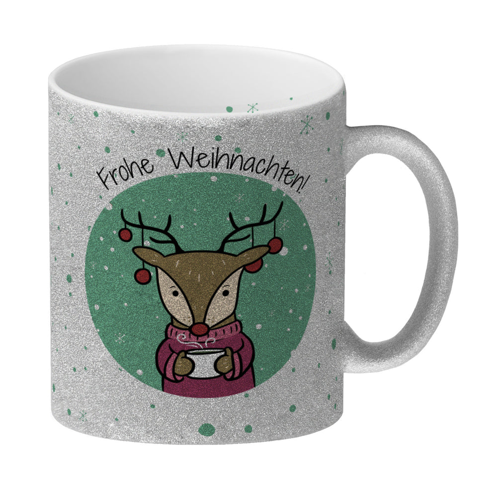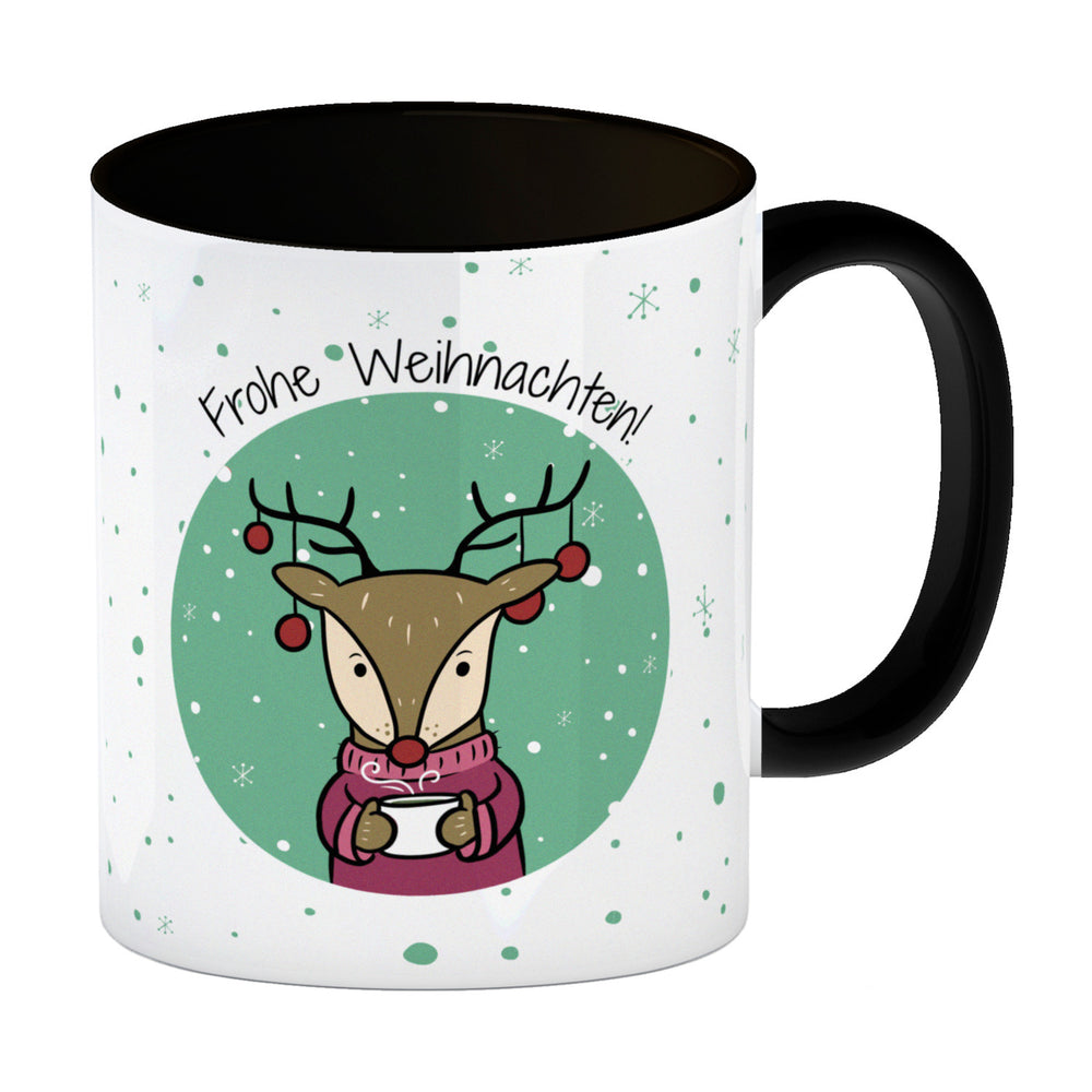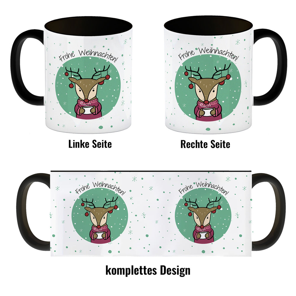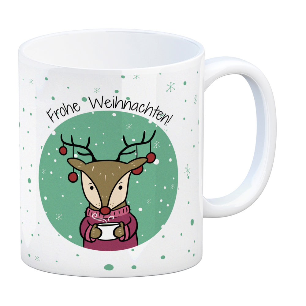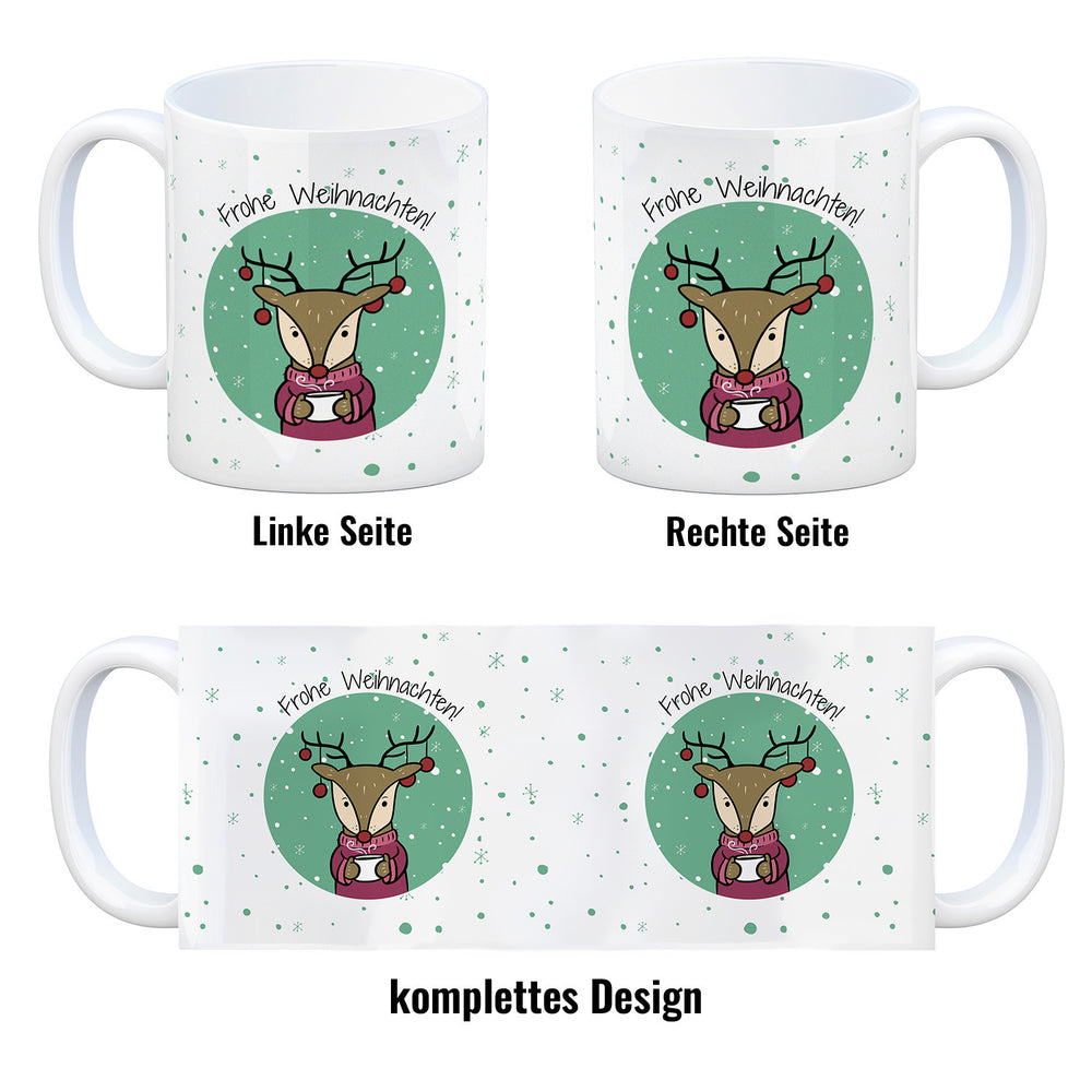 - 1x Frohe Weihnachten Kaffeebecher mit süßem Rentier in der gewählten Ausführung