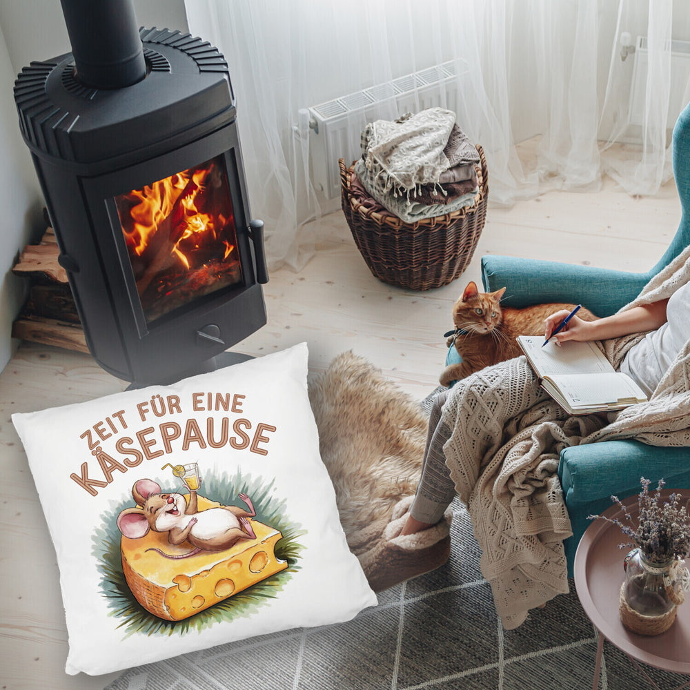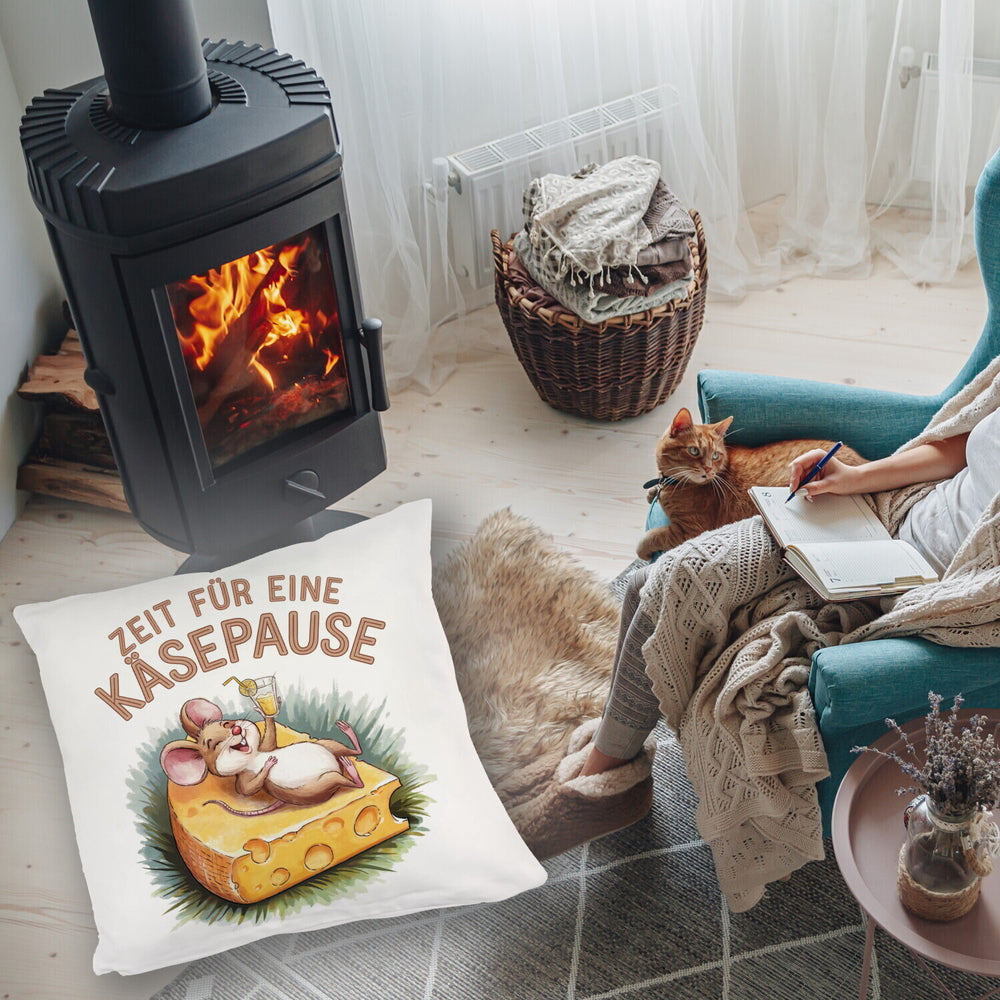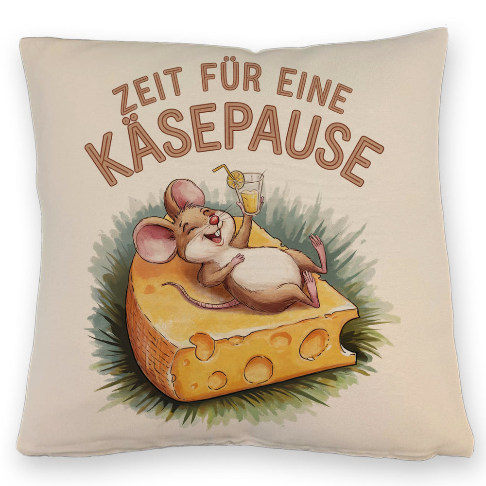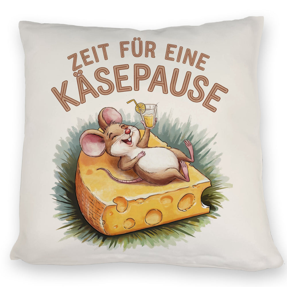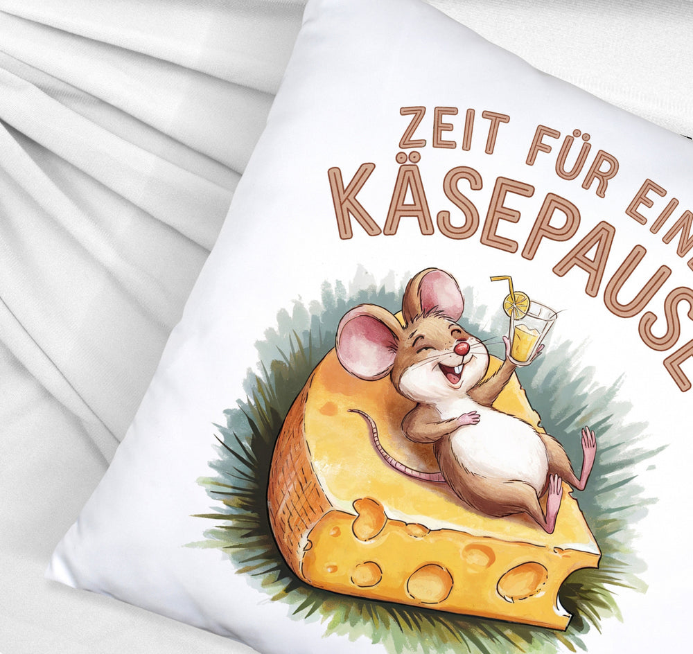 - Dieses lustige Dekokissen zeigt eine fröhliche Maus, die entspannt auf einer großen Käsescheibe liegt. Der weiße Hintergrund wird durch eine bunte Aquarellzeichnung und den Spruch "Zeit für eine Käsepause" in Großbuchstaben ergänzt. Die fröhlichen Farben machen dieses Kissen zu einem echten Hingucker!