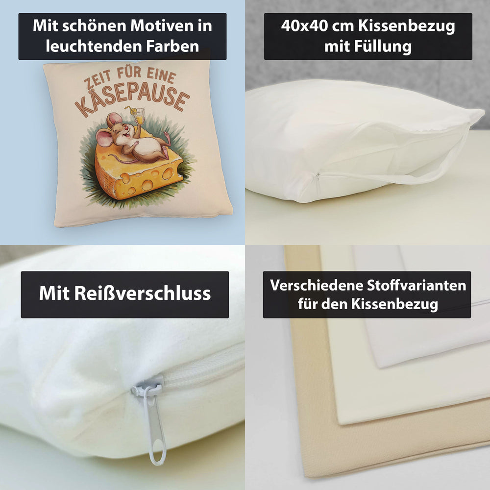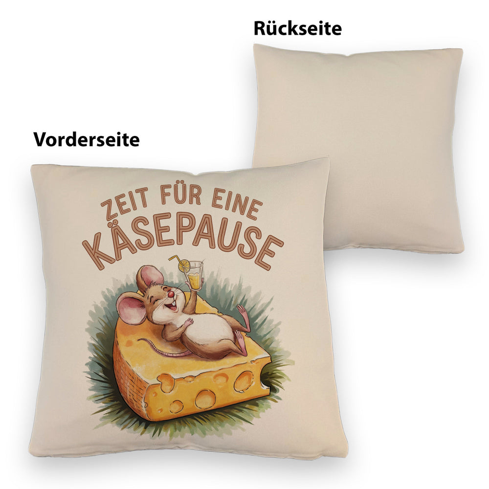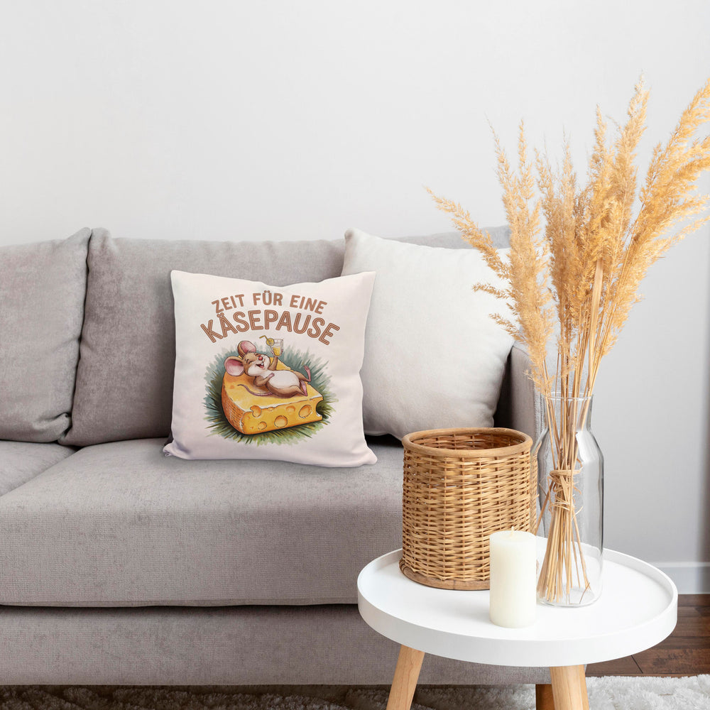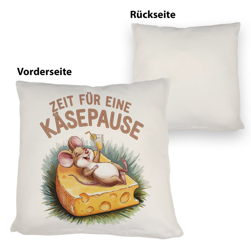 - Dieses lustige Dekokissen zeigt eine fröhliche Maus, die entspannt auf einer großen Käsescheibe liegt. Der weiße Hintergrund wird durch eine bunte Aquarellzeichnung und den Spruch "Zeit für eine Käsepause" in Großbuchstaben ergänzt. Die fröhlichen Farben machen dieses Kissen zu einem echten Hingucker!