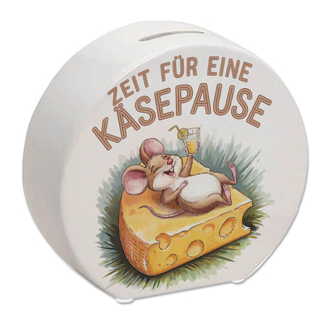 Fröhliche Maus auf Käse Spardose - Käsepause