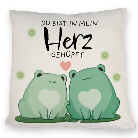 Frosch Kissen mit Spruch Du bist in mein Herz gehüpft
