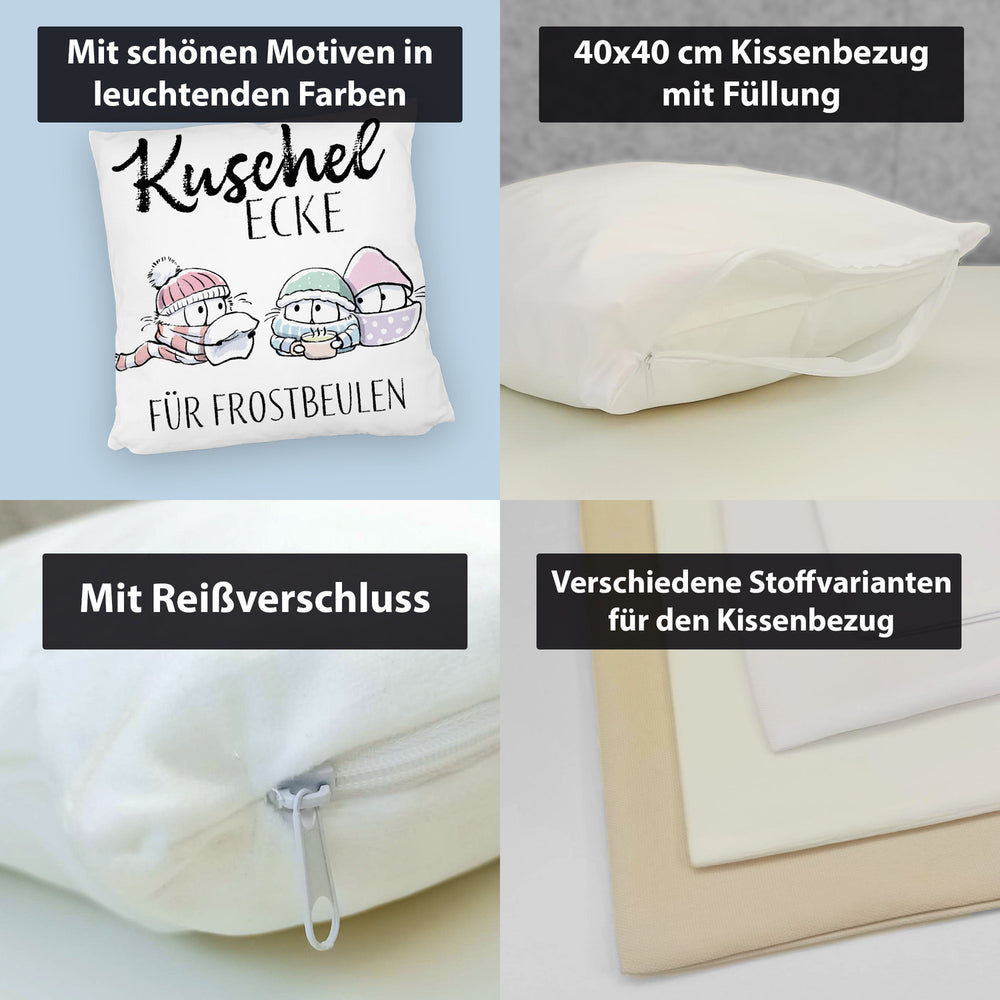 - 1x Frostbeule Kissen mit Spruch Kuschelecke für Frostbeulen in der gewählten Ausführung