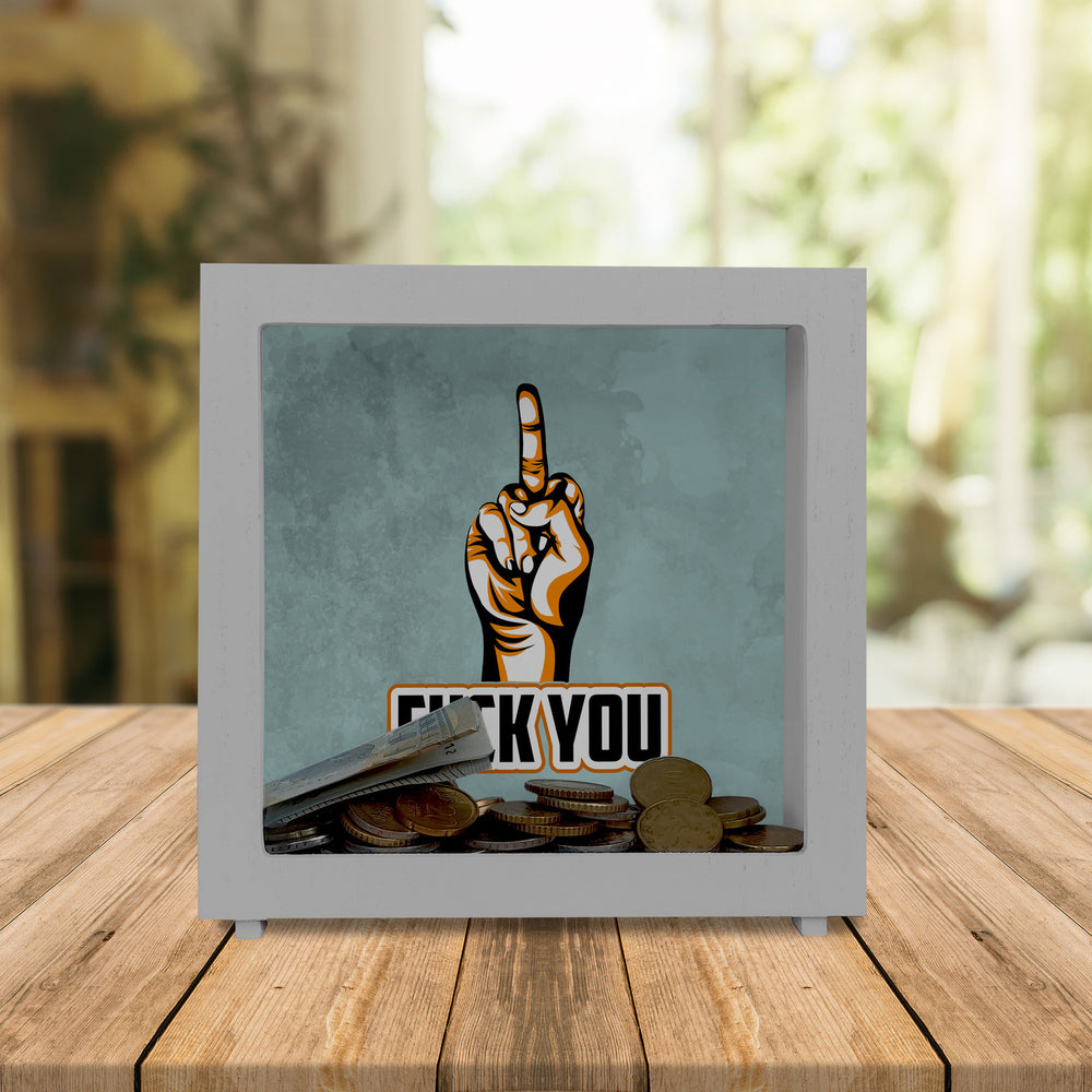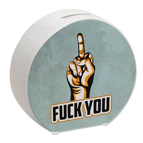 Fuck You Spardose mit Mittelfinger Motiv