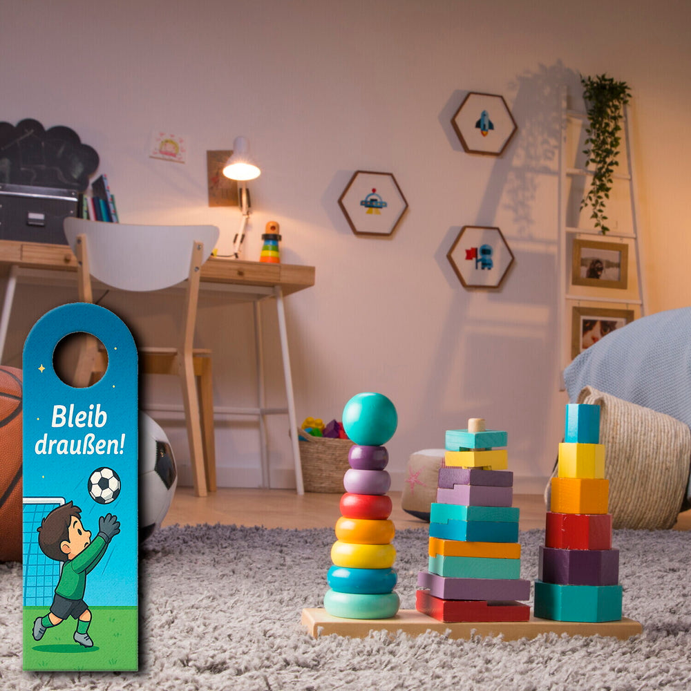 - Schnappen Sie sich diesen lustigen Türhänger und bringen Sie Ihrem Kleinen Freude und Ordnung! Mit viel Liebe designt und gedruckt, überzeugt er durch Qualität und Charme. Ein Muss für jedes Kinderzimmer, das Fußball liebt!