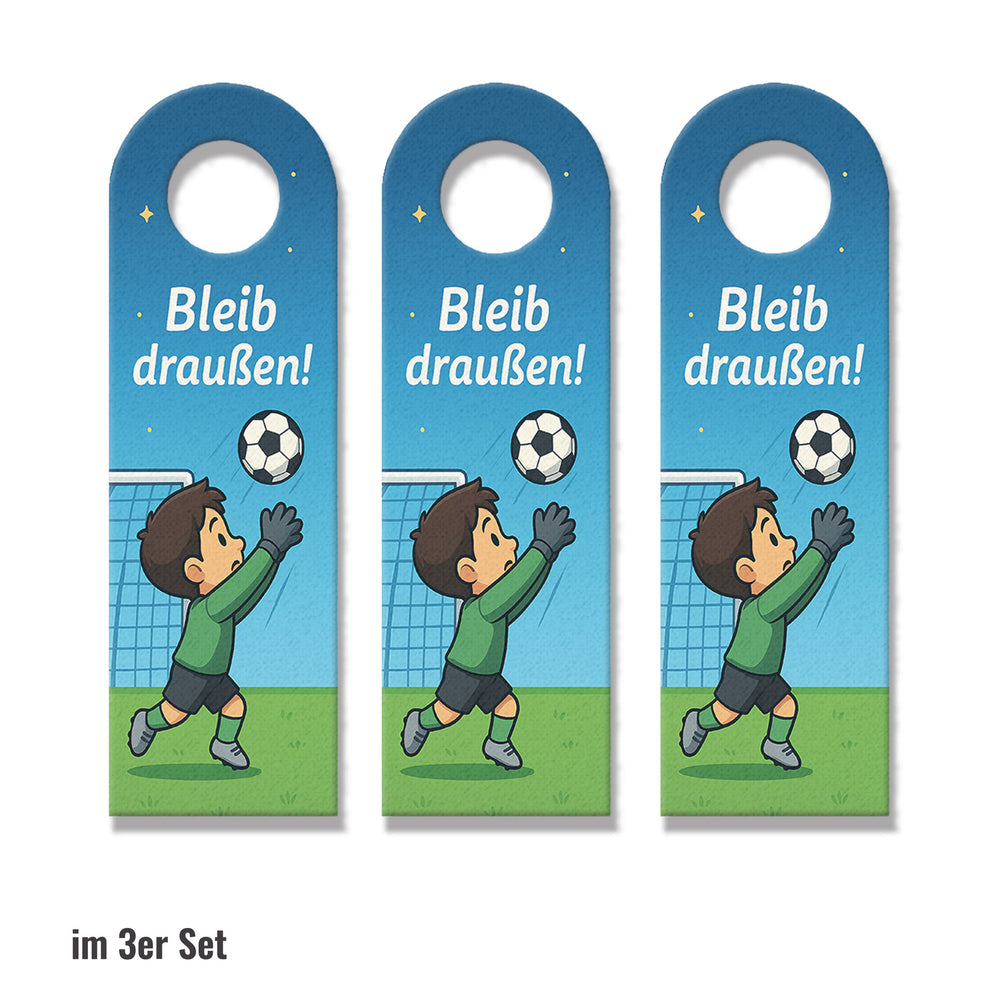 - 1x Fußball Kind Cartoon Bleib draußen! Komm rein! Türhänger in der gewählten Setgröße