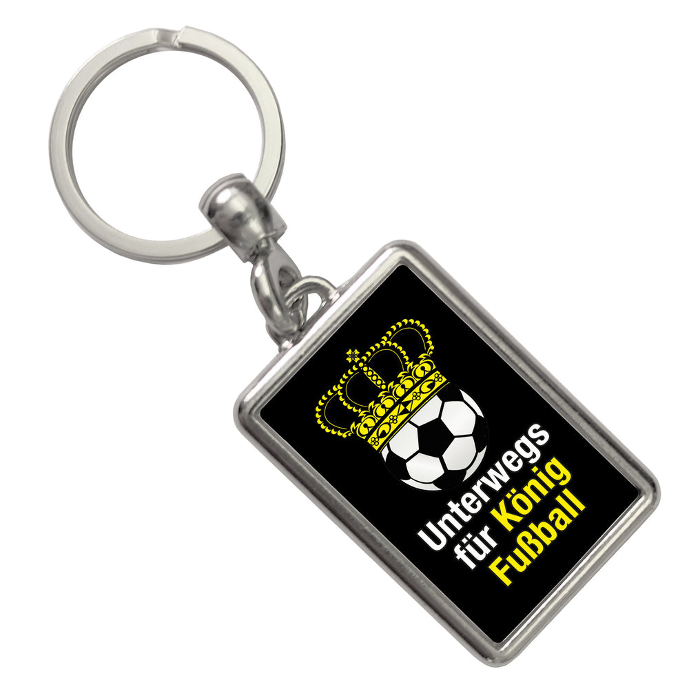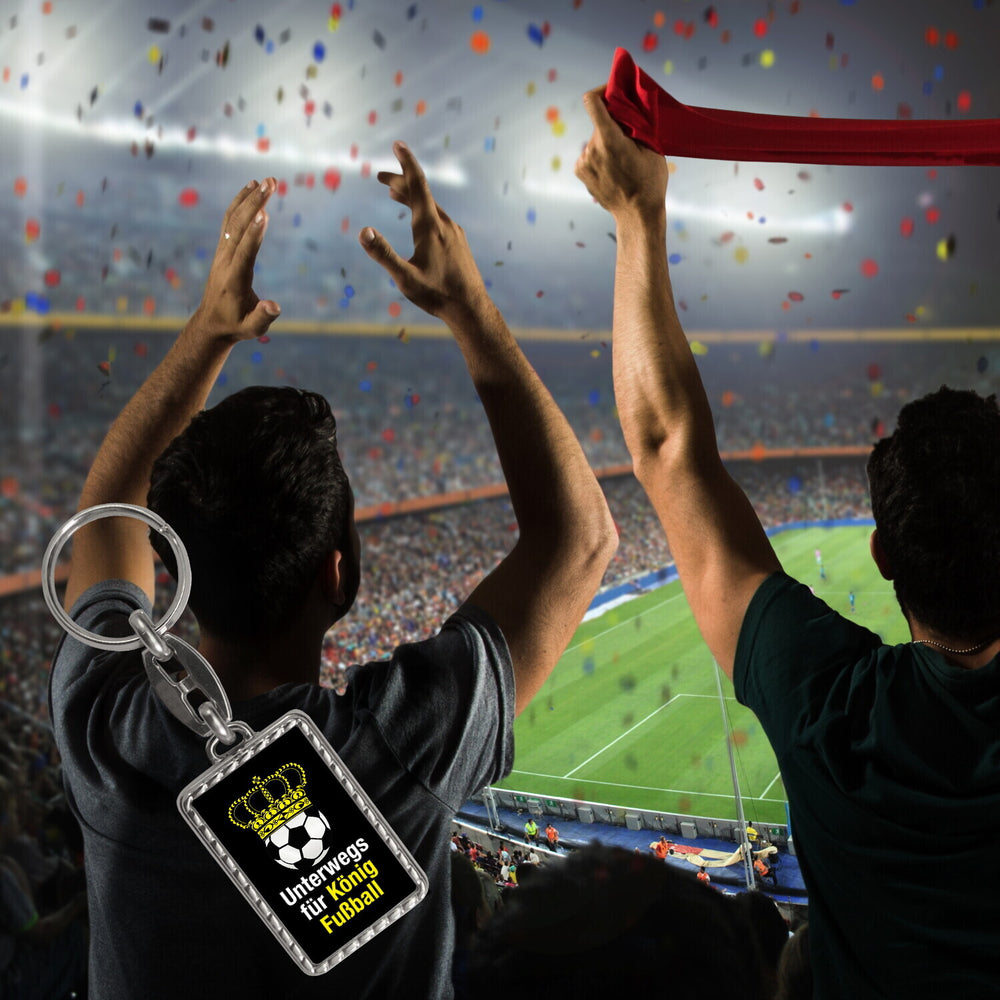 • 1x Fußball mit Krone Schlüsselanhänger mit Spruch Unterwegs für König Fussball in der gewählten Ausführung
