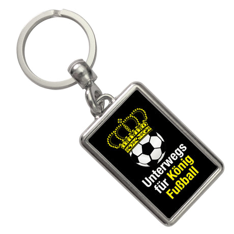 Fußball mit Krone Schlüsselanhänger mit Spruch Unterwegs für König Fussball