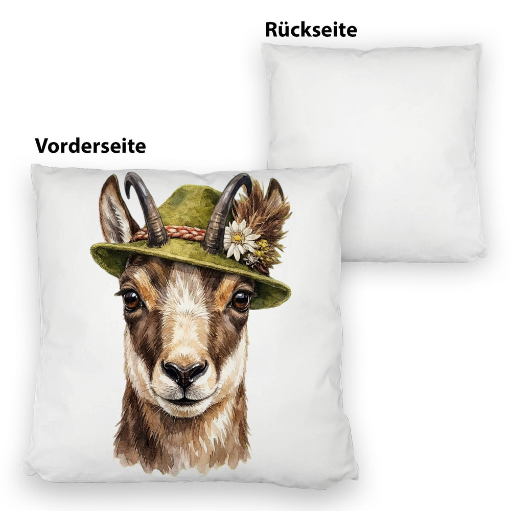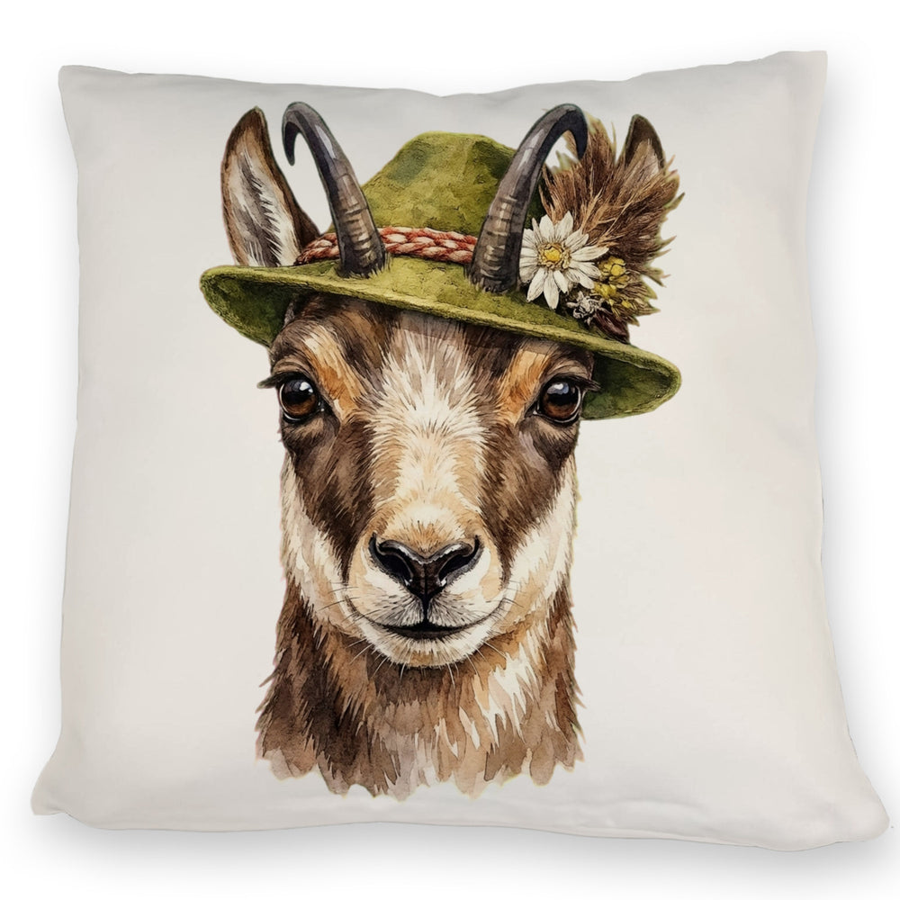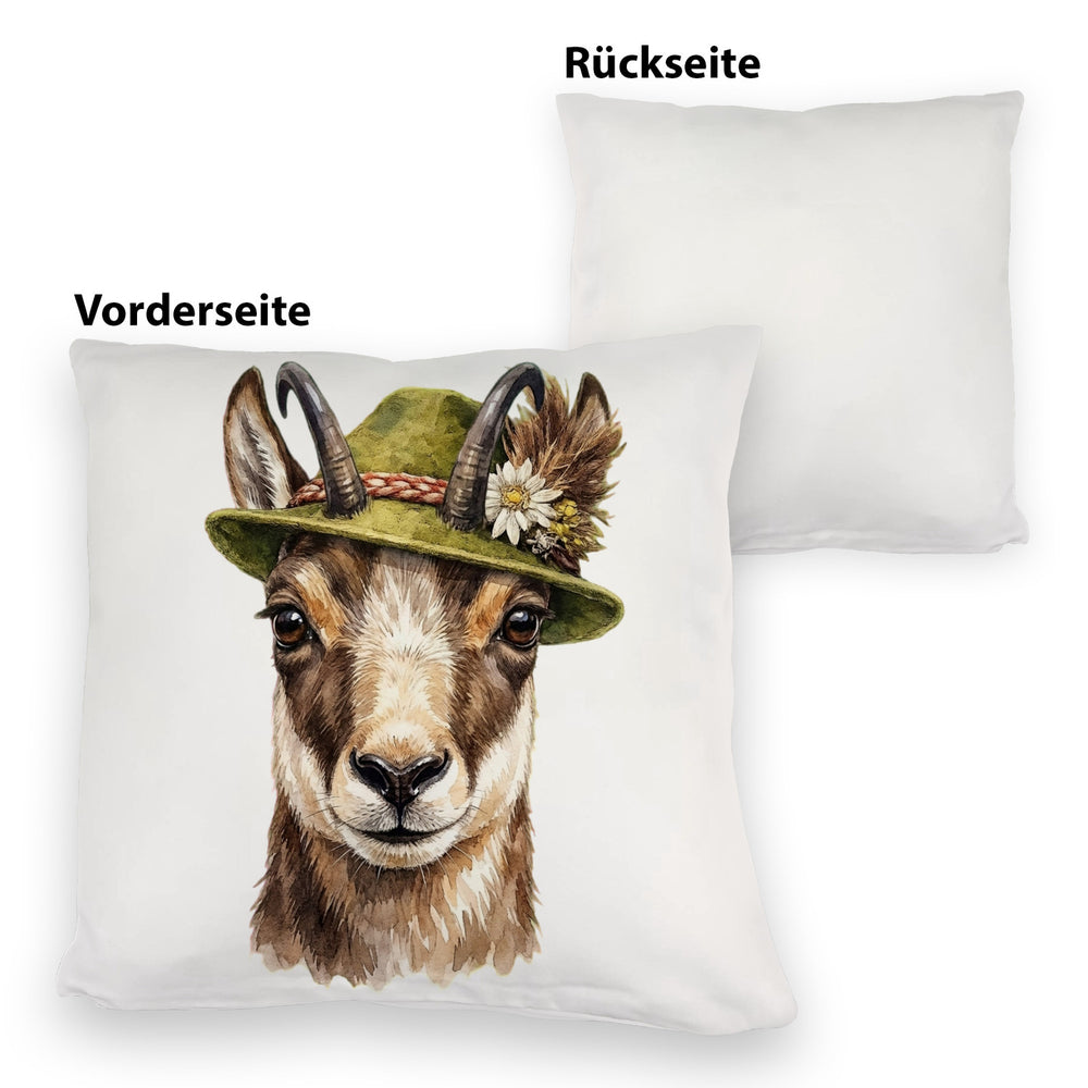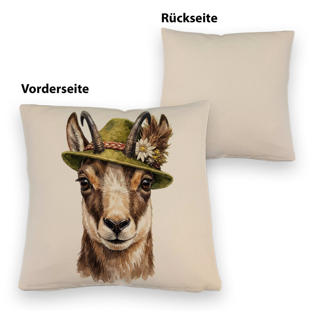 - 1x Gämse mit alpenländischem Trachtenhut Kissen in der gewählten Ausführung