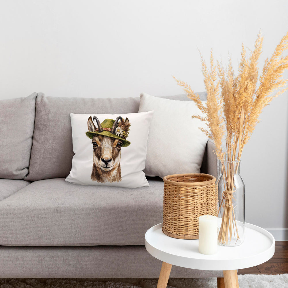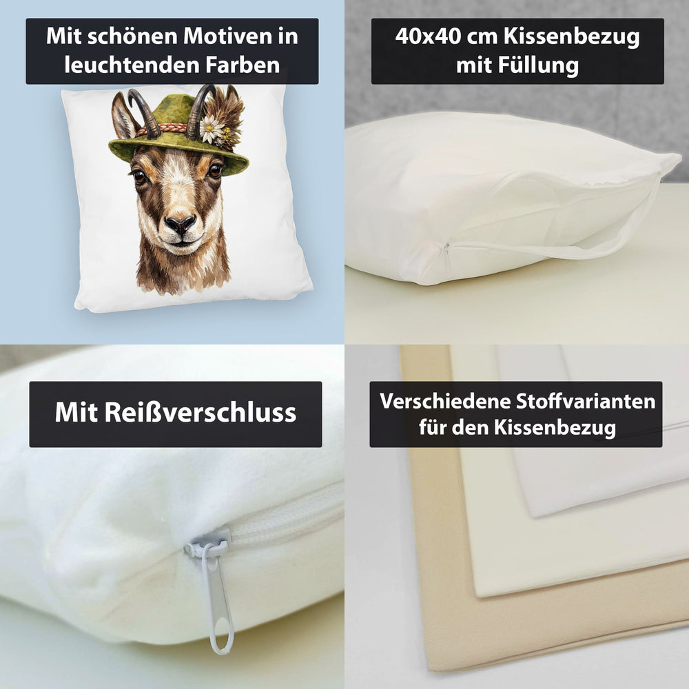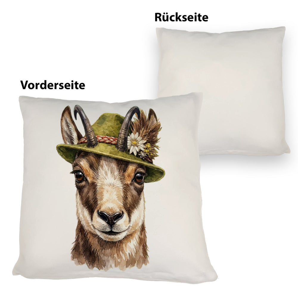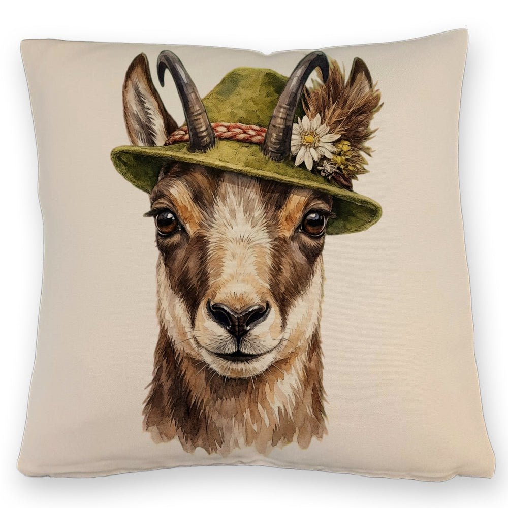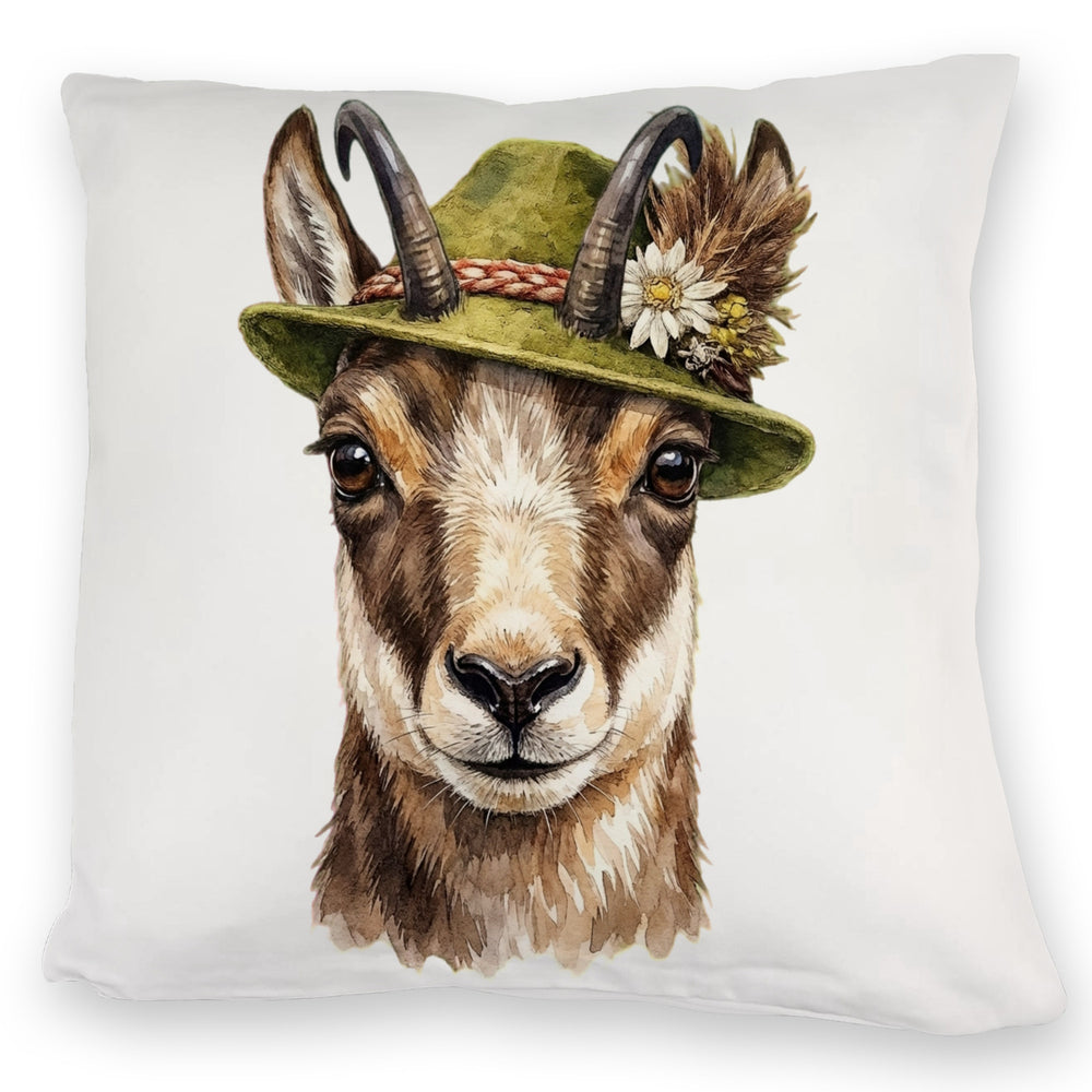 - 1x Gämse mit alpenländischem Trachtenhut Kissen in der gewählten Ausführung