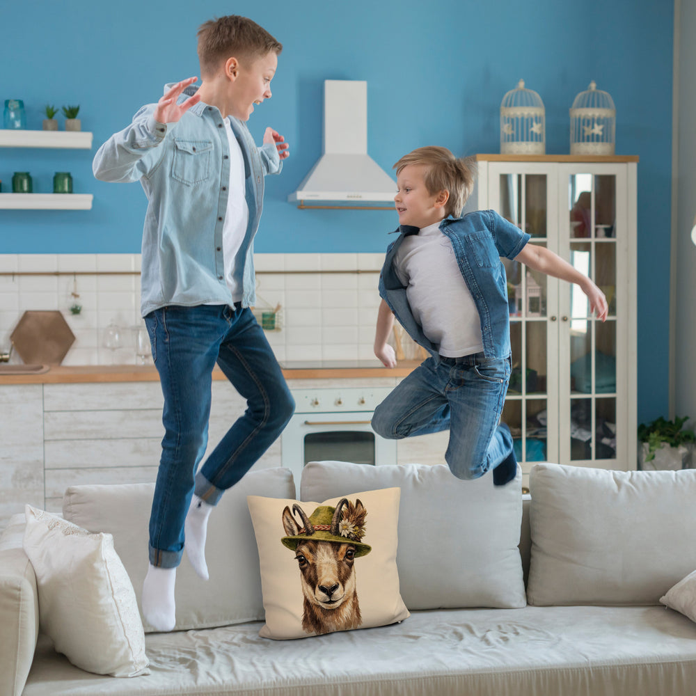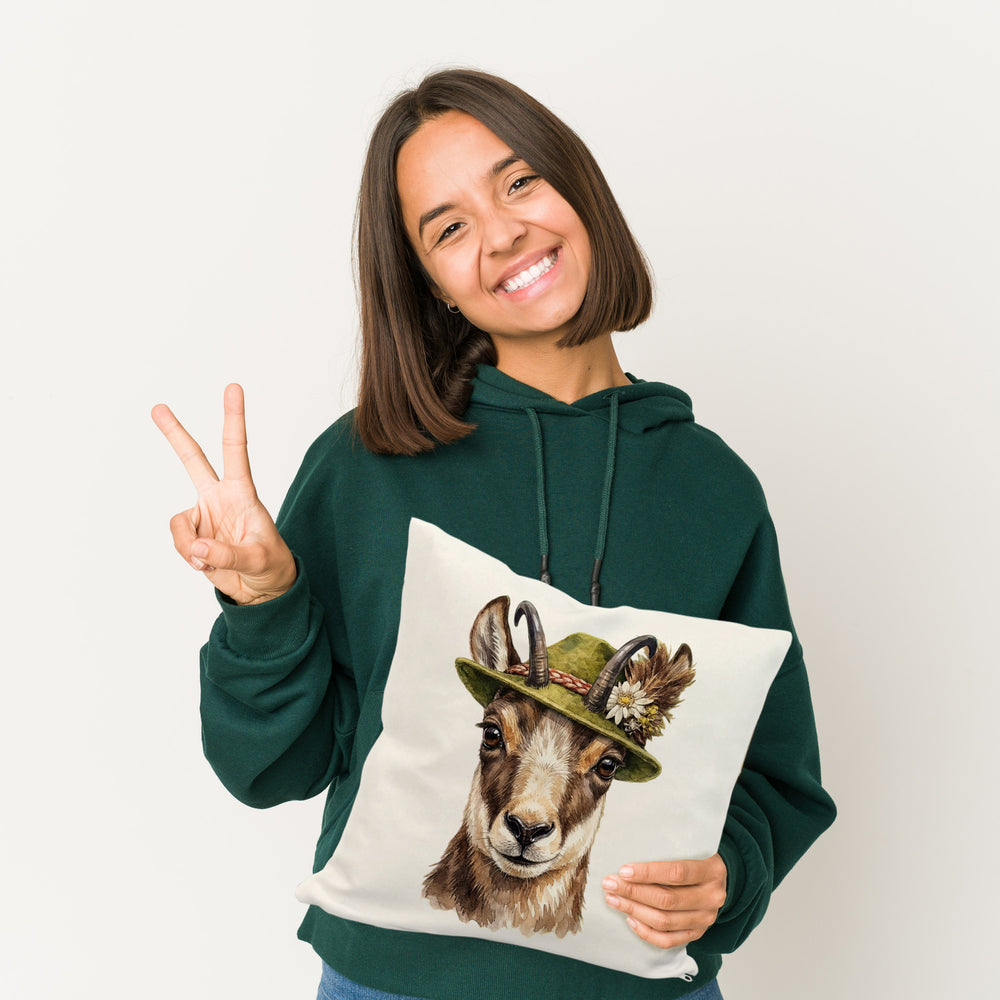 Gämse mit alpenländischem Trachtenhut Kissen - Standard ist auf Lager und wird versandt, sobald es wieder verfügbar ist