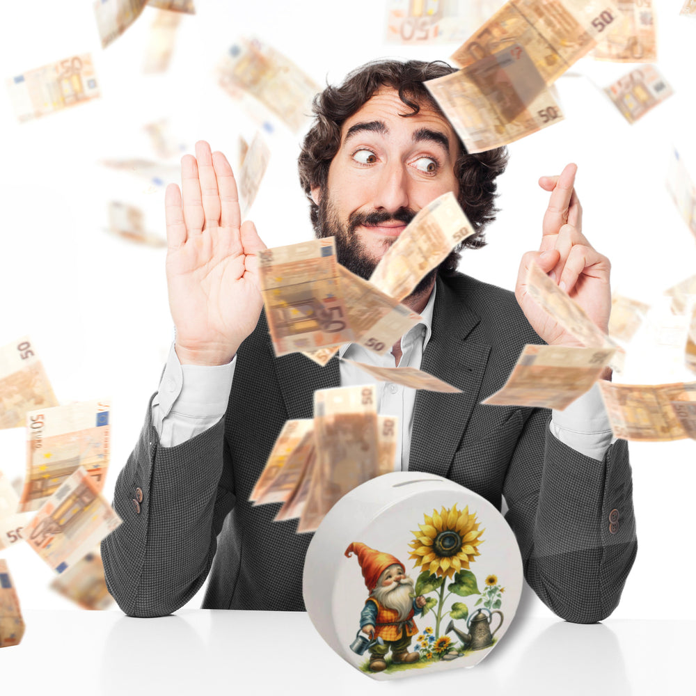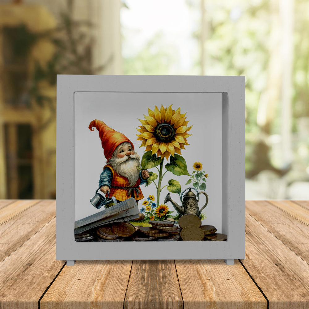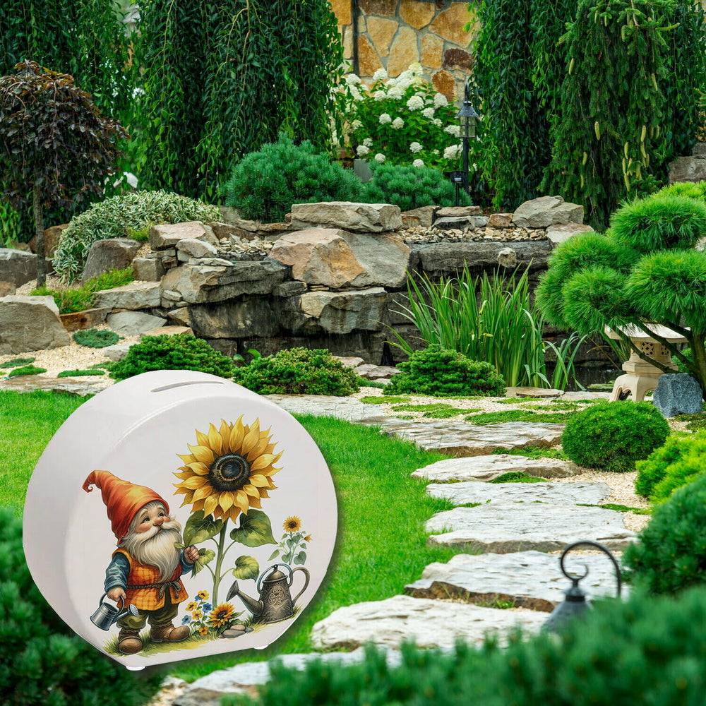 - Entdecke unseren Gartenzwerg, der nicht nur deinen Garten verschönert, sondern auch fleißig deine Groschen hütet! Mit Gießkanne in der Hand und einer strahlenden Sonnenblume an der Seite, steht dieser kleine Kerl für Sparspaß mit Charme. Eine Figur, die Zwerge und Zierpflanzen in einem vereint!