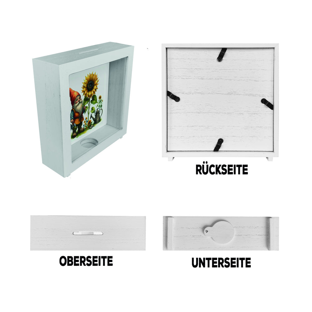 - Erhältlich in drei unterschiedlichen Varianten: Als schlichte Holzspardose, als hochwertige ovale Keramik-Version oder als exklusive Rahmen-Variante aus Holz mit Sichtfenster – perfekt für Geldgeschenke. Mit Sorgfalt bedruckt in unserer Spardosen-Manufaktur in Deutschland.