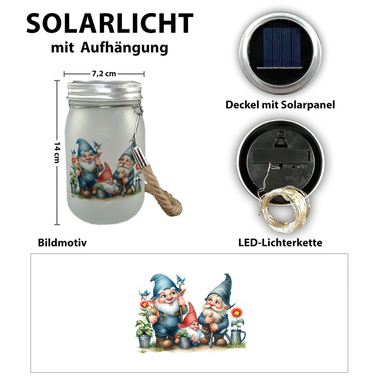 - Lieferumfang: 1x Gartenzwerge Solarlicht