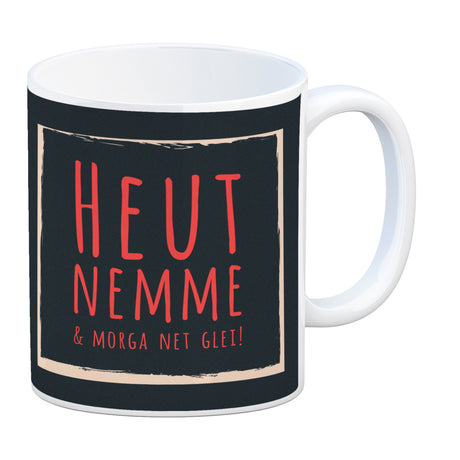 Kaffeebecher mit Spruch: Heut nemme & morga net glei! Schwäbisch Schwaben Dialekt Mundart