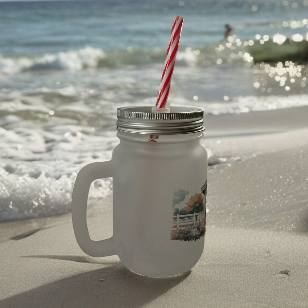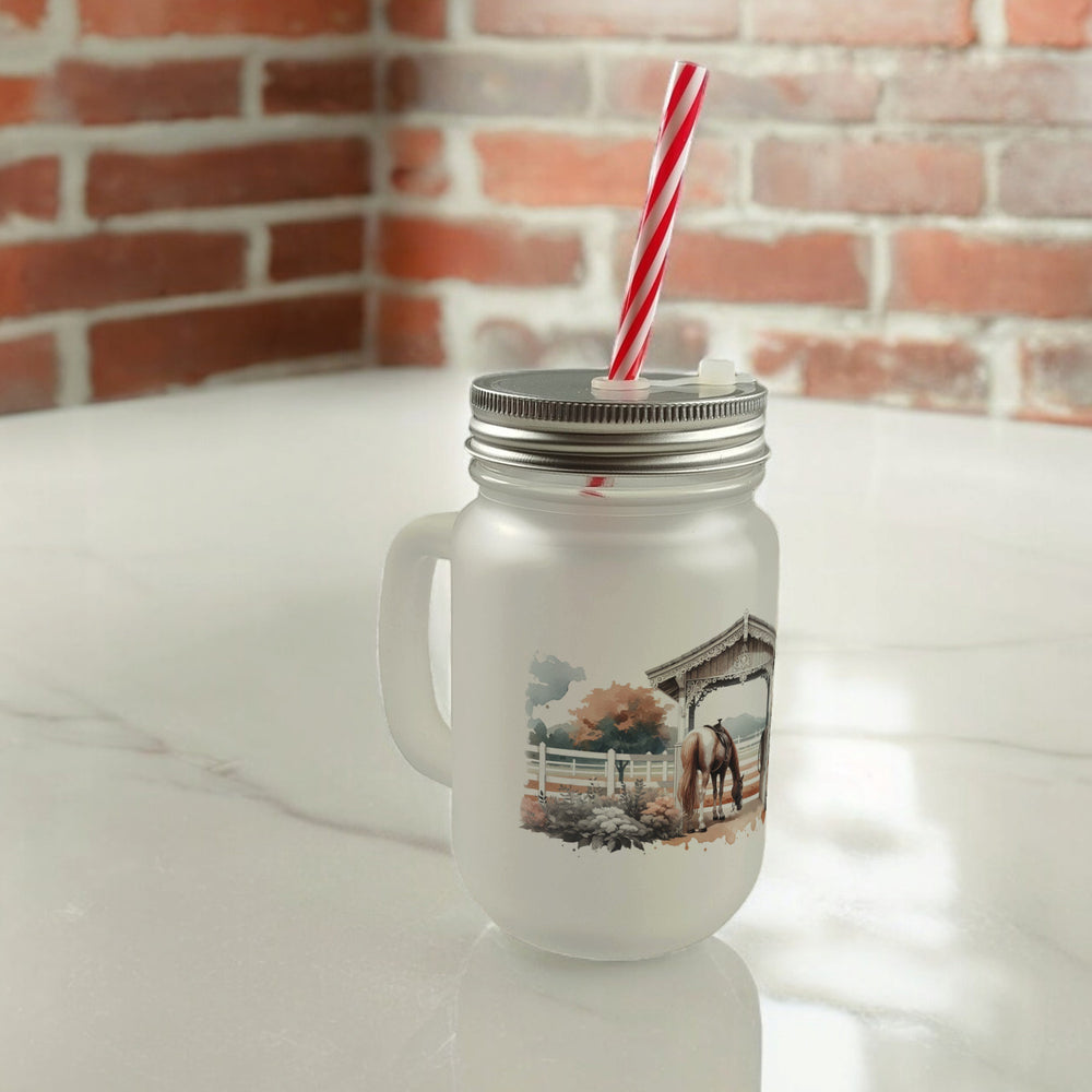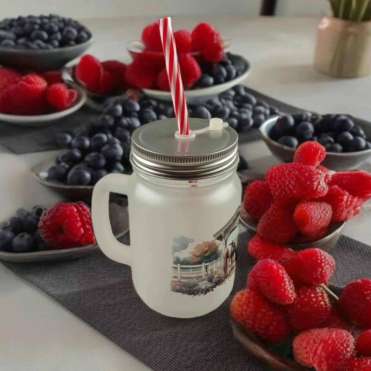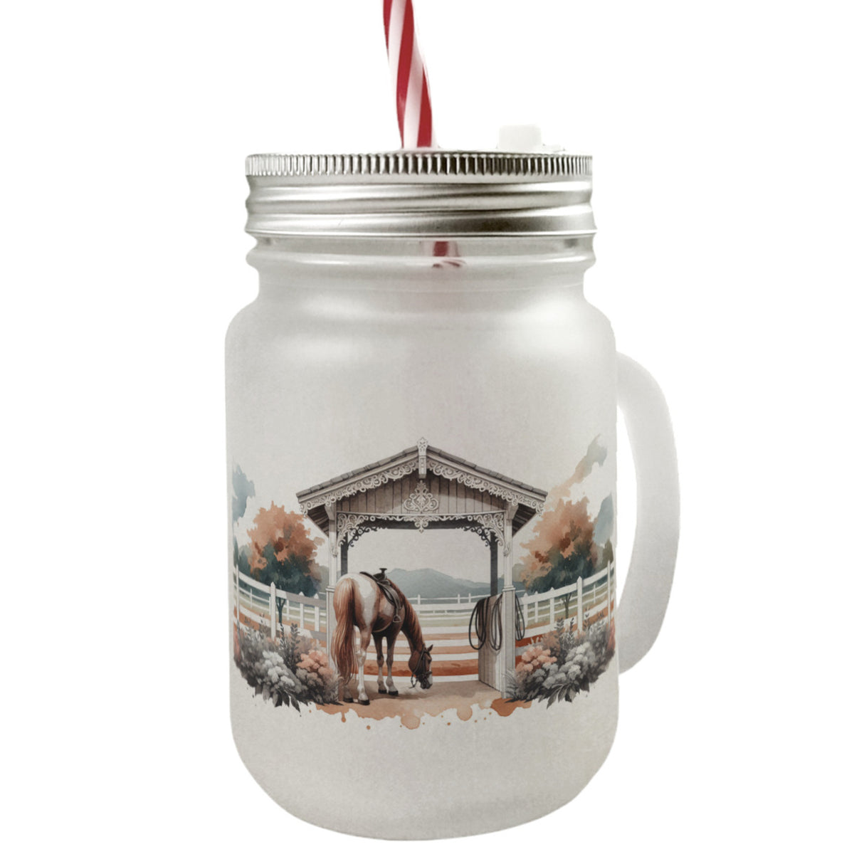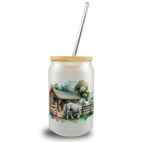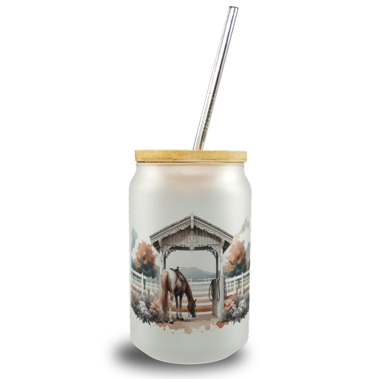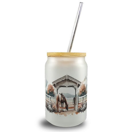 Pferdestall mit zwei Pferden Trinkglas mit Bambusdeckel
