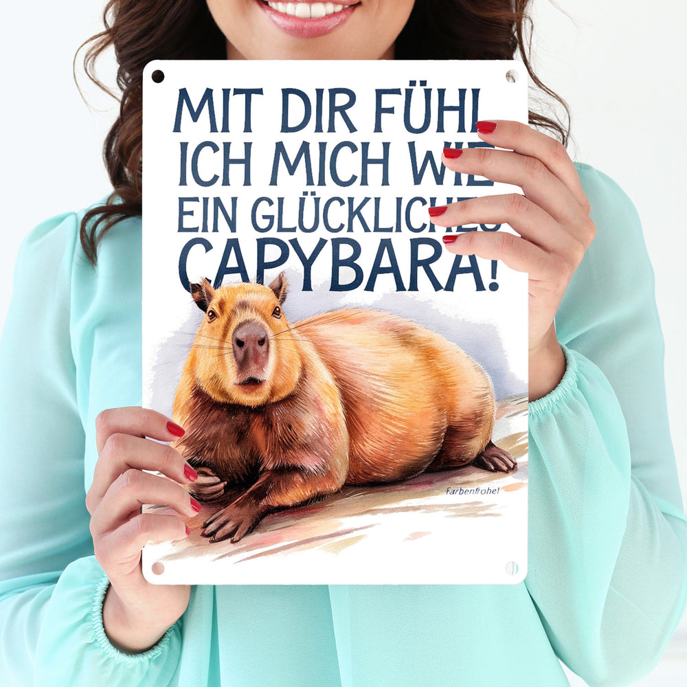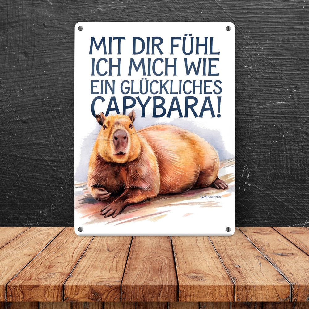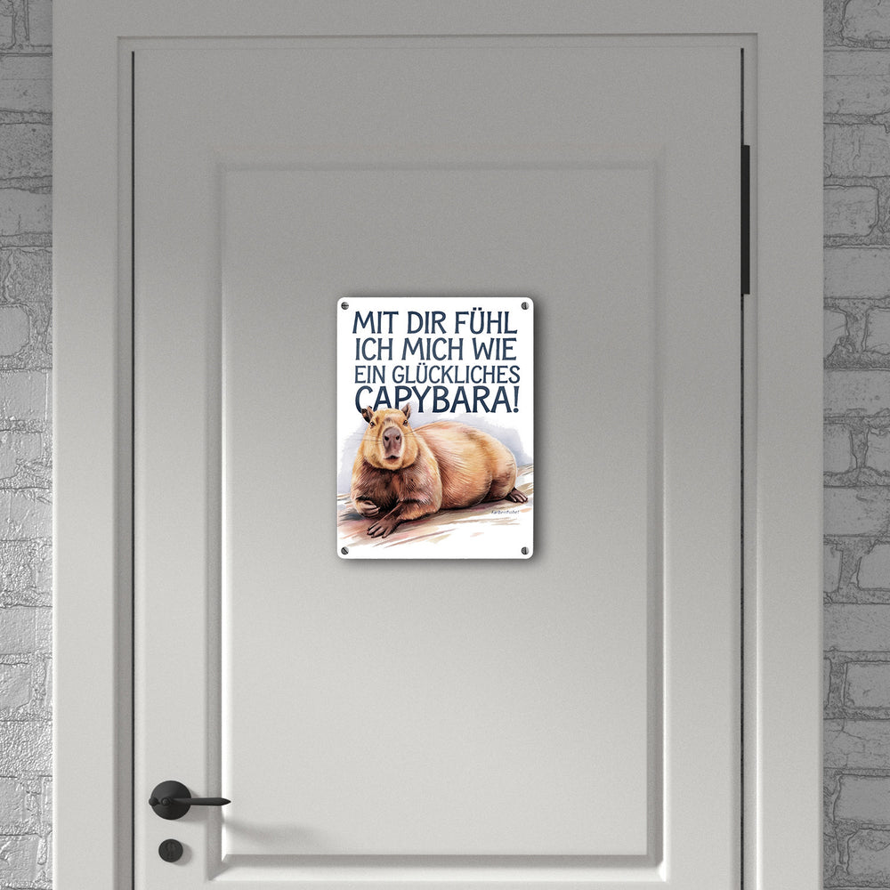 Glücklich mit dir- fröhliches Capybara Metallschild in 15x20 cm