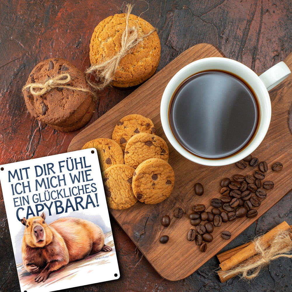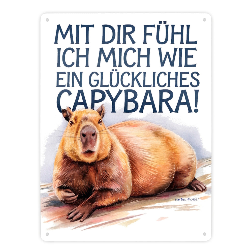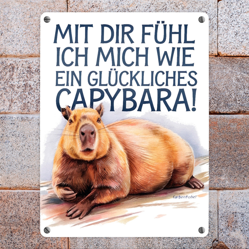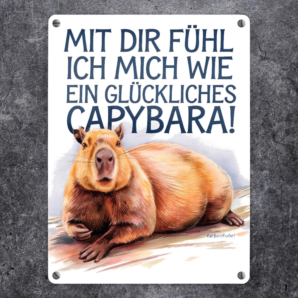 Glücklich mit dir- fröhliches Capybara Metallschild in 15x20 cm