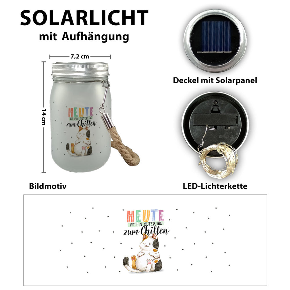 - Lieferumfang: 1x Glückskatze Solarlicht mit Spruch Heute ist ein guter Tag zum Chillen