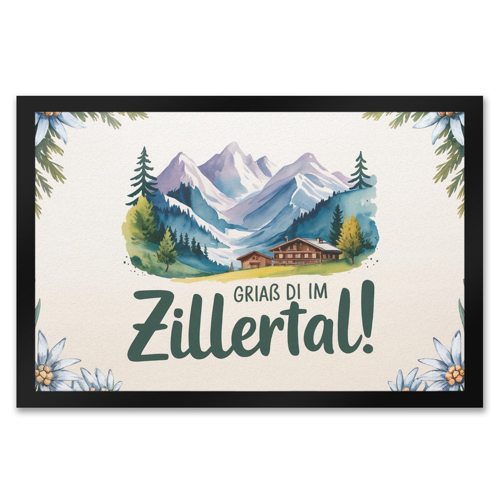 Griaß di im Zillertal! Fußmatte in 35x50 cm mit Berglandschaft