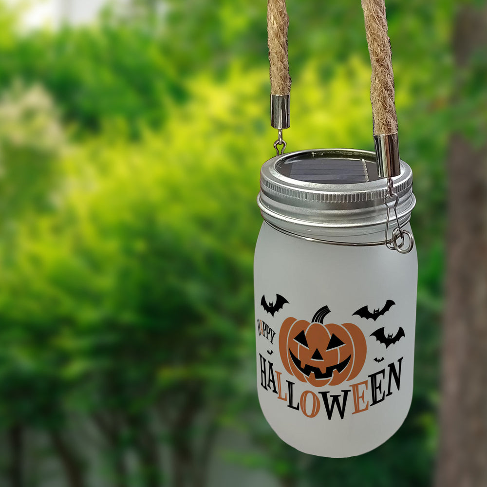 - Das Solarlicht hat ein charmantes Halloween-Thema-Design auf weißem Hintergrund. Mit einem großen, grinsenden Kürbis, schwarzen und orangefarbenen Buchstaben und umherfliegenden Fledermäusen wird dieses Accessoire garantiert zum Hingucker.
