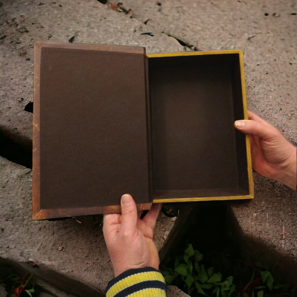 Versinke in der Welt des Geheimnisvollen! Unsere Bücherbox – dein persönlicher Schatzkammer-Zauber in Braun/Gold. Perfekt getarnt – sicher bewahrt. Jetzt entdecken! Material: Papier,Pappe