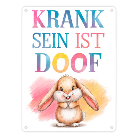 Krank sein ist doof Metallschild in 15x20 cm mit niedlichem Kaninchen