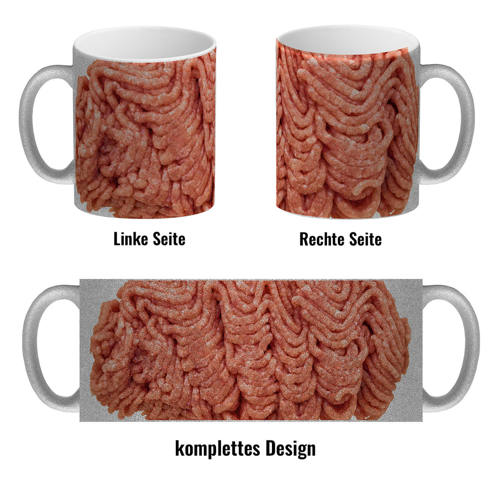 Der Hackfleisch Kaffeebecher ist ideal für alle, die auf frisches Hackfleisch stehen. Erhältlich in unterschiedlichen Varianten: Als weiße Standardtasse, mit farbigem Henkel und Innenseite, als edle Glastasse oder in der exklusiven Silberedition mit Glitzereffekt. Jeder Becher wird liebevoll in unserer Tassen-Manufaktur in Deutschland bedruckt und bietet langanhaltenden Tragekomfort. Der Becher ist robust und spülmaschinengeeignet. Dank der verschiedenen Farben und Designs ist er perfekt für jeden Geschmack geeignet. Egal ob Sie eine originelle Geschenkidee suchen oder einfach nur etwas frischen Wind in Ihre Kaffeeroutine bringen möchten - der Hackfleisch Kaffeebecher ist die perfekte Wahl!