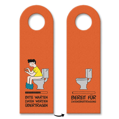 Toiletten Türhänger mit Spruch: Bitte warten, Datenübertragung