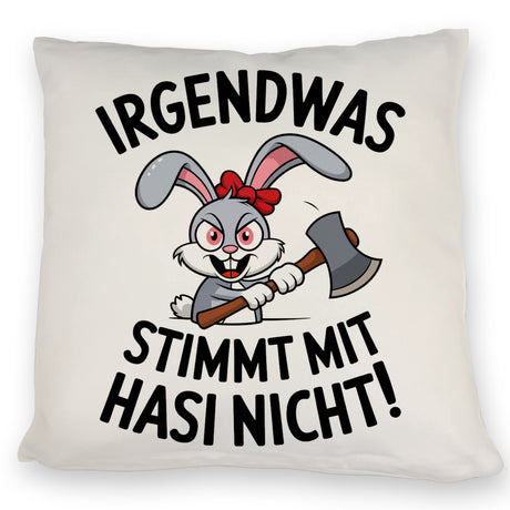 Irgendwas stimmt mit Hasi nicht! Kissen mit Killer-Hase