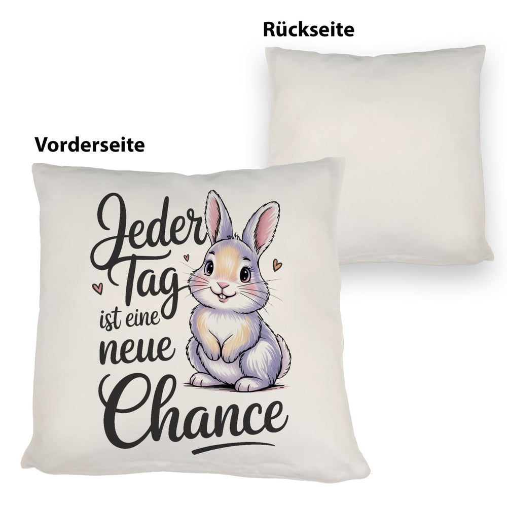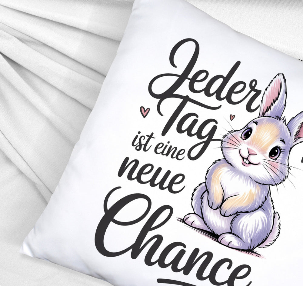 Hase mit Herzen Jeder Tag ist eine neue Chance Spruch Kissen