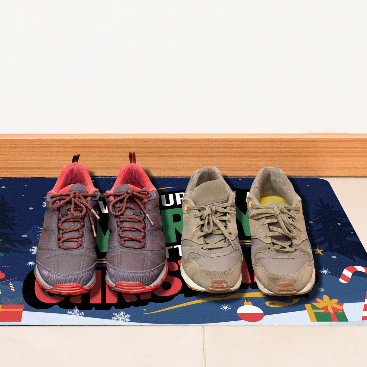 • Schieben Sie den Weihnachtsstress zur Seite und legen Sie sich stattdessen unsere "HAVE YOURSELF A MERRY LITTLE CHRISTMAS" Fußmatte vor die Tür! Diese farbenfrohe Bodenverschönerung verspricht nicht nur warme Füße, sondern verbreitet auch eine ordentliche Portion Festtagslaune schon im Eingangsbereich. Wer kann da widerstehen?
